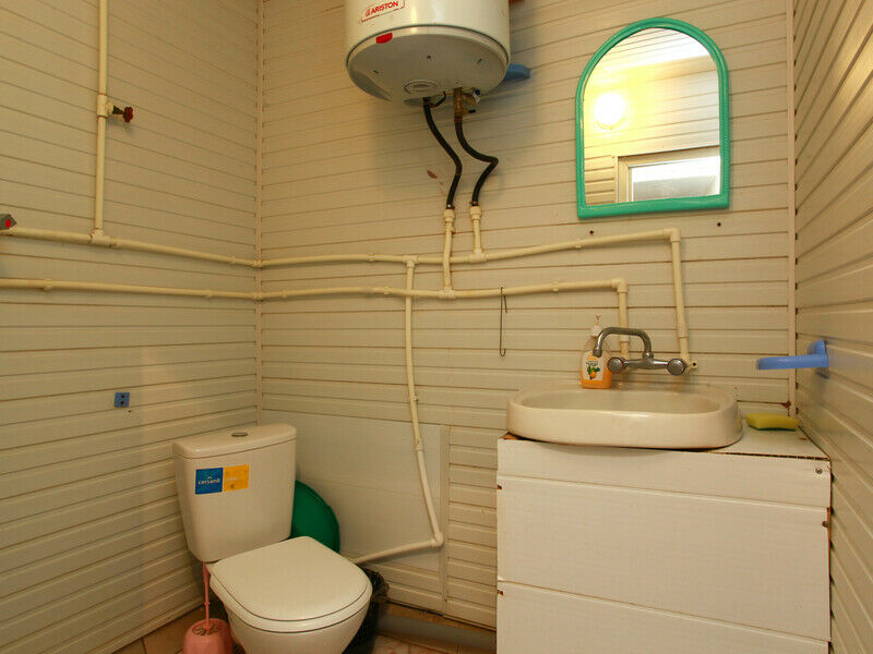 На территории среди 5 деревянных жилых коттеджей имеются специальные площадки для установки трейлеров. Стационарный жилой фонд базы способен единовременно вместить 110 гостей.