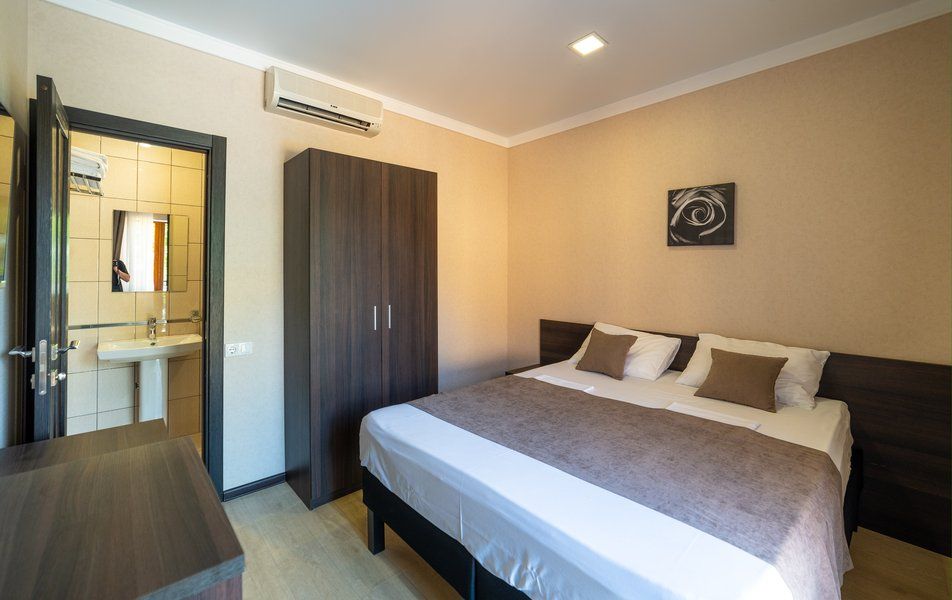 Двухэтажный дом разместился на Черноморской улице. В распоряжении гостей уютные номера с новым ремонтом разной категории комфорта. Во всех номерах есть мини-холодильник, телевизор, кондиционер и высокоскоростной интернет. Большинство номеров имеют собственные душевые комнаты, для остальных — санузел и душевые расположены на этаже. Для приготовления блюд гости могут воспользоваться общей кухней. В распоряжении гостей — большой охраняемый двор, открытый бассейн с зоной отдыха, кроме того, на территории обустроена детская площадка.