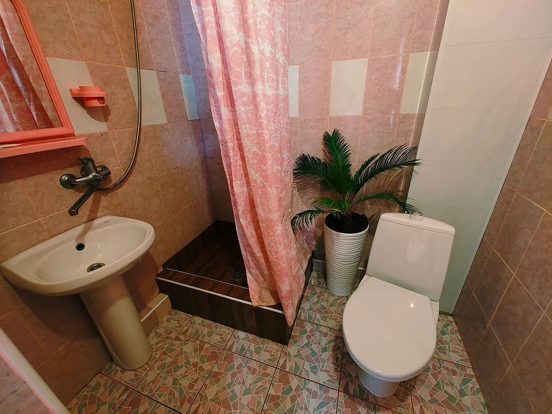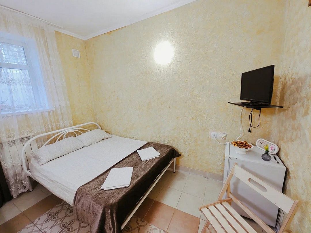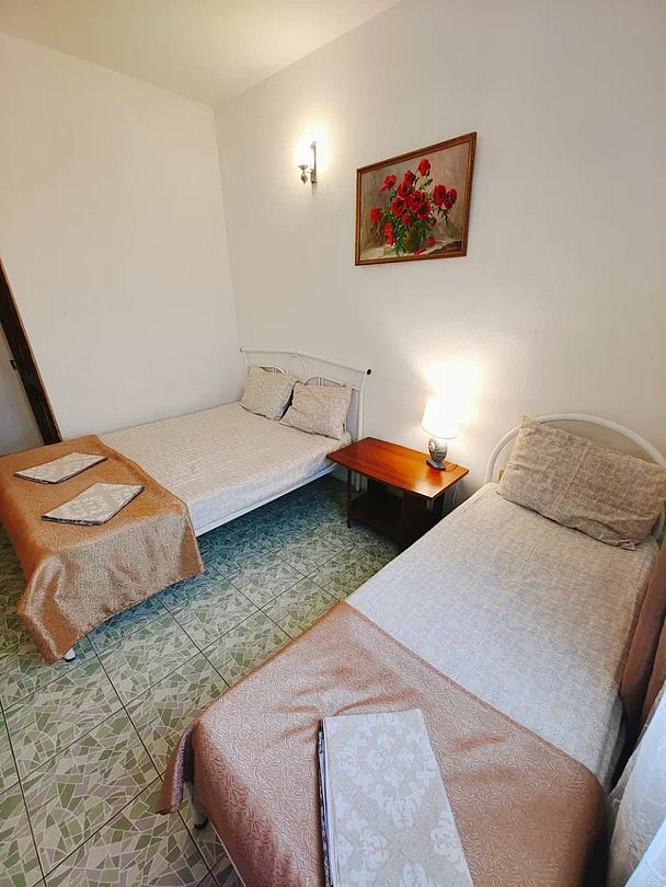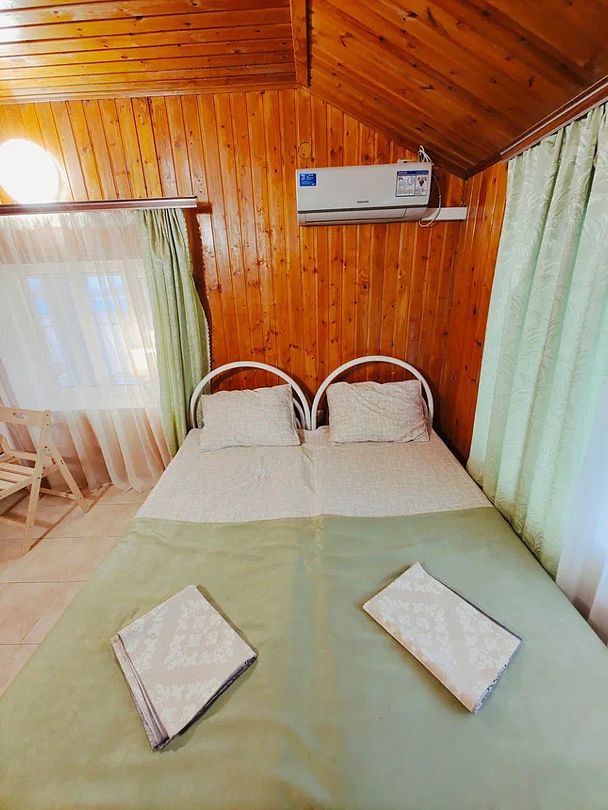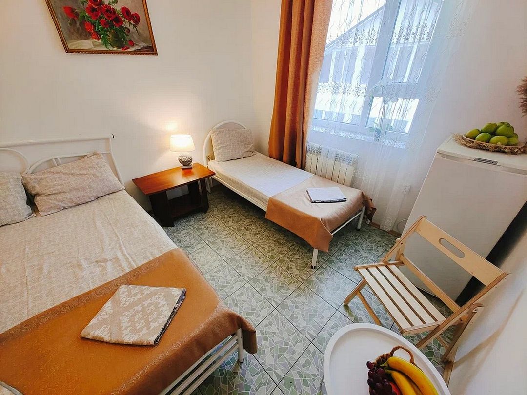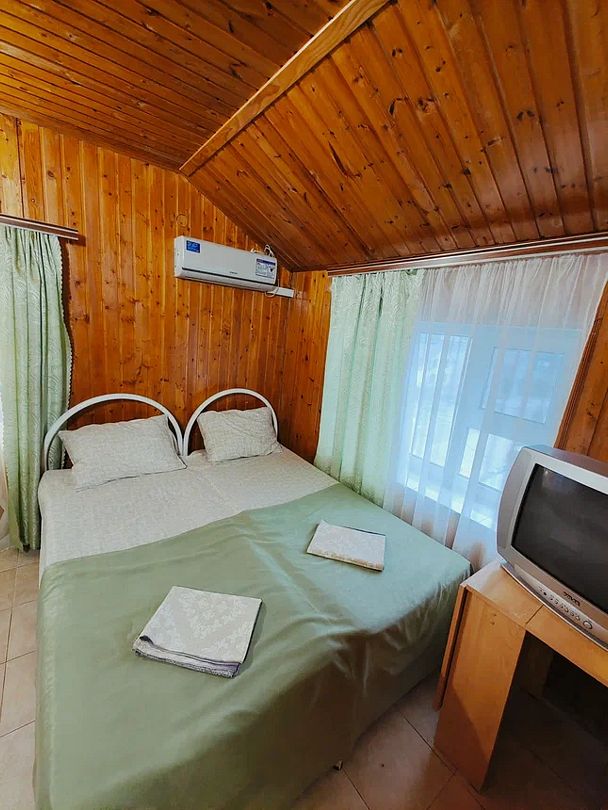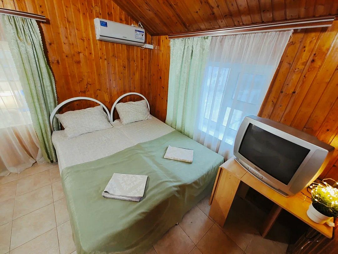 Номер оснащен: две односпальные кровати, прикроватные тумбочки, зеркало, шкаф, мини-холодильник, кондиционер, телевизор. Душ и туалет на этаже.