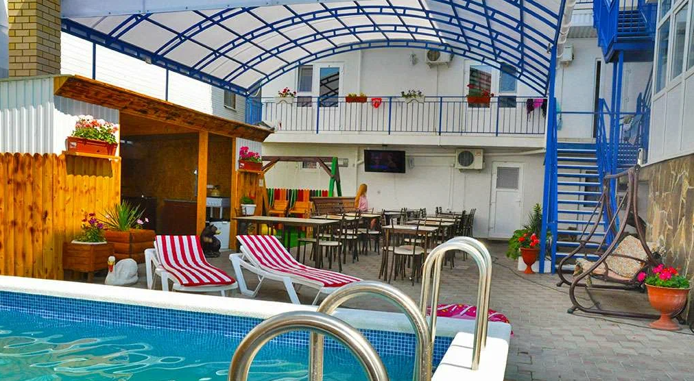 На территории расположен открытый бассейн с подогревом. Вокруг бассейна оборудована просторная зона отдыха с шезлонгами для загара.