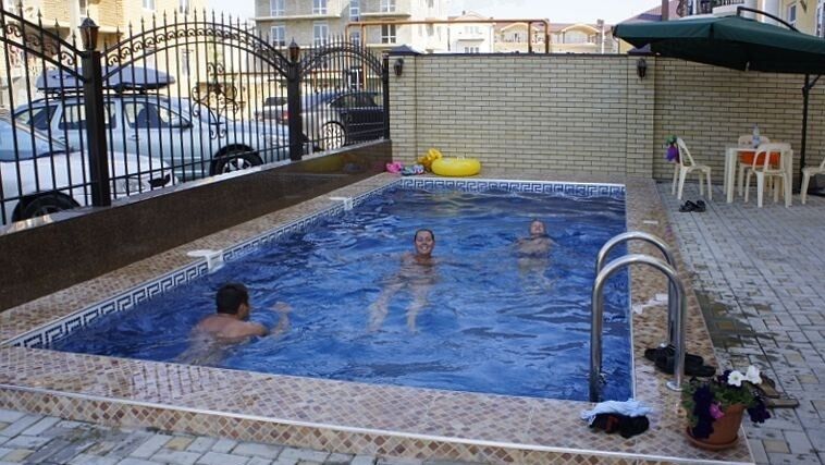 Также вы не будете скучать и на территории дома, ведь там есть отличный бассейн с зоной отдыха, поэтому вы сможете устроить себе пляж, не покидая гостевого дома. Для детишек на территории оборудована детская площадка, а также есть небольшой детский надувной бассейн, который находится сразу возле взрослого, поэтому вы сможете и отдыхать сами, и присматривать за своим ребенком.