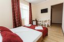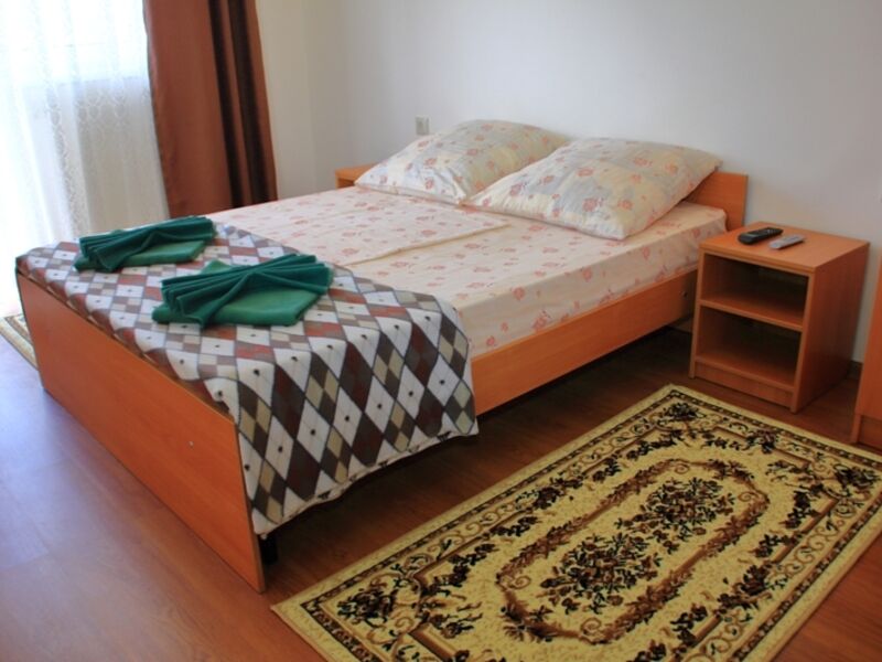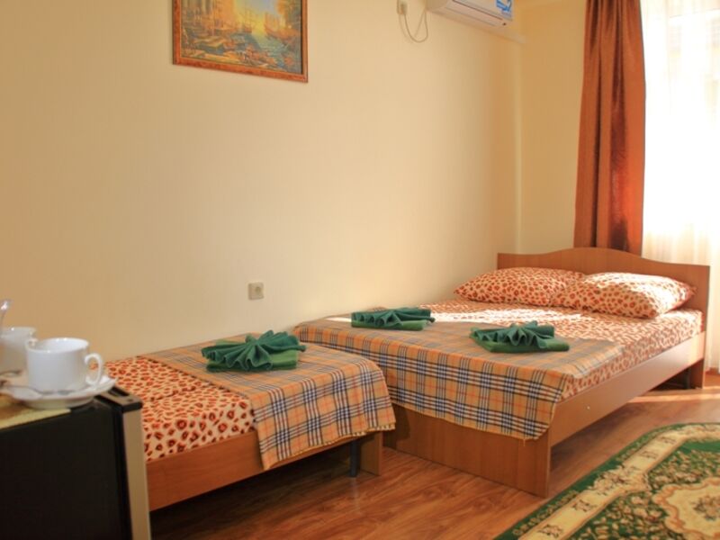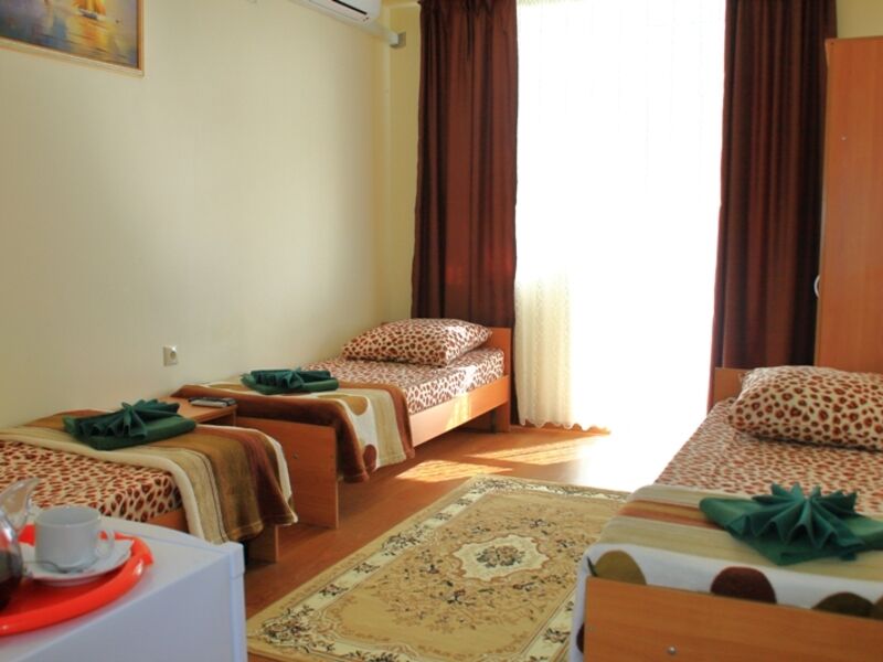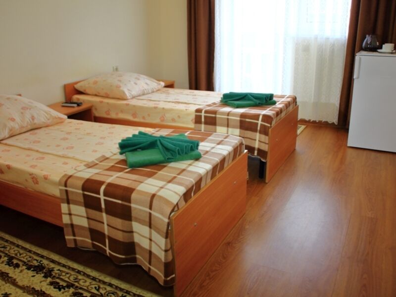 Четырехэтажный корпус отеля (без лифта) находится на благоустроенной закрытой территории площадью 3200 кв.м. Жилой фонд предлагает однокомнатные и двухкомнатные номера, оборудованные собственным санузлом с душем, сплит-системой и необходимой бытовой техникой. Единовременно отель способен принять почти 70 отдыхающих.