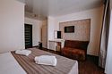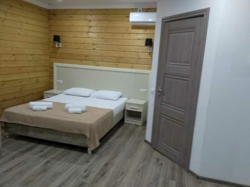 Отель включает в себя двухэтажный корпус и коттедж, расположенные на благоустроенной закрытой территории площадью 3400 кв.м. Отдыхающих ожидают однокомнатные номера Комфорт, рассчитанные на двух человек с возможностью разместить дополнительного гостя. Номера оснащены кондиционером, телевизором, холодильником, есть собственный санузел с набором косметически принадлежностей.