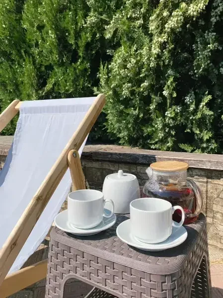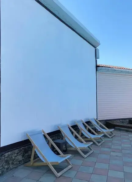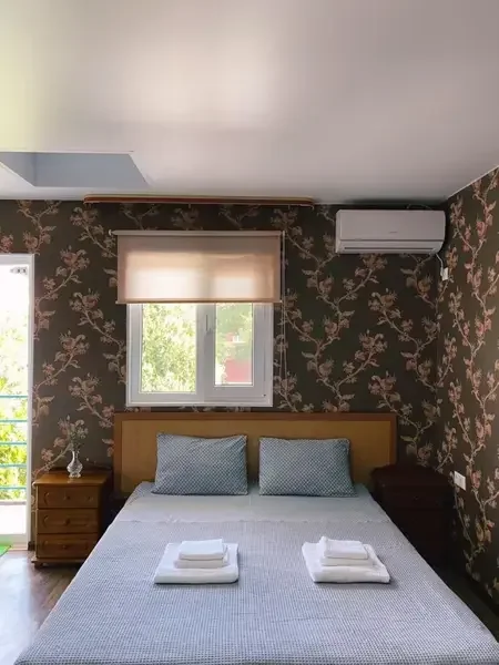 К услугам гостей на территории открытый плавательный бассейн, игровая комната с настольным теннисом и небольшой библиотекой, а также мангальная зона для всех желающих. Для юных гостей обустроена детская площадка с горкой и качелями. А расположенная рядом остановка общественного транспорта позволит вам быстро и с комфортом добраться до любого пляжа или до центра города.
