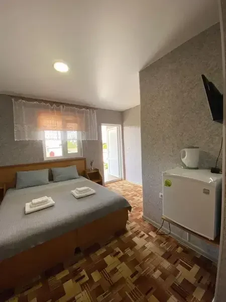 Просторный номер на 4-х человек с двуспальной кроватью, раскладным диваном и кондиционером.