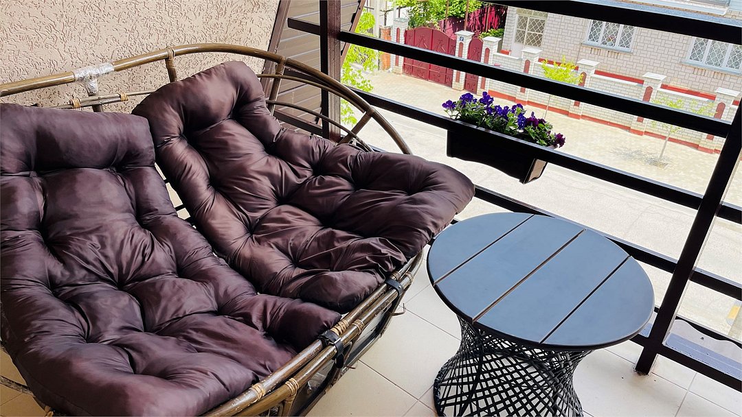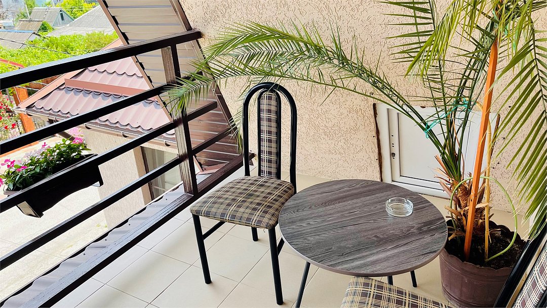 Wi-Fi, фен, душевая кабина, банные полотенца, тапочки, балкон с красивым видом, балкон с шезлонгом, терраса, двуспальная кровать, односпальная кровать, гладильная доска, стулья, шкаф для одежды, журнальный столик, зеркало, пуфики, кухня, информационная карта, меню, стиральная машина, чайник, унитаз, раковина, обеденная зона, отопление, плиточное покрытие, вид во двор, стаканы, кухонная утварь, столовые приборы, туалетные средства, сплит-система, мангал, принадлежности для барбекю, сушилка для белья, телевизор с плоским экраном, мини-холодильник, москитная сетка, номер для некурящих, вешалки-плечикиВ номере