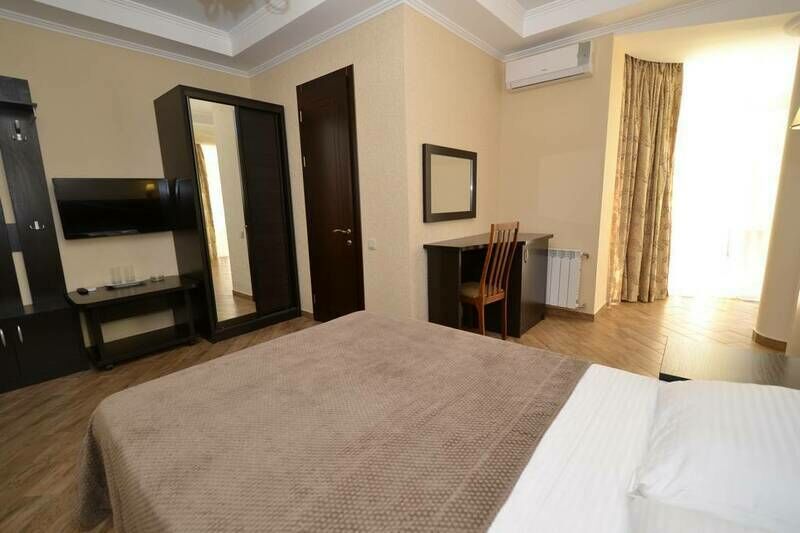Самолетом до аэропорта г. Анапа, далее на маршрутке №113 до остановки «Аквапарк», далее на маршрутке №128 до остановки «Паралия», далее пройти пешком 170 м до отеля.