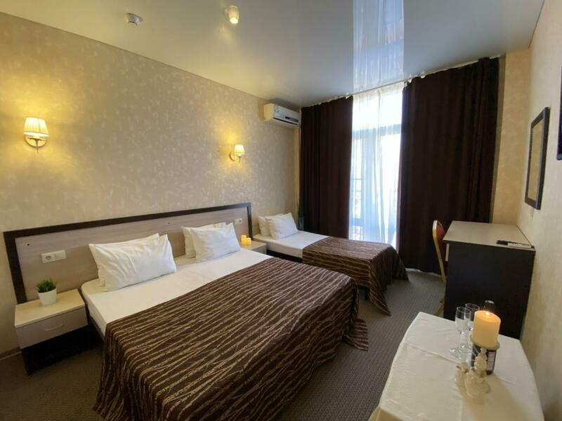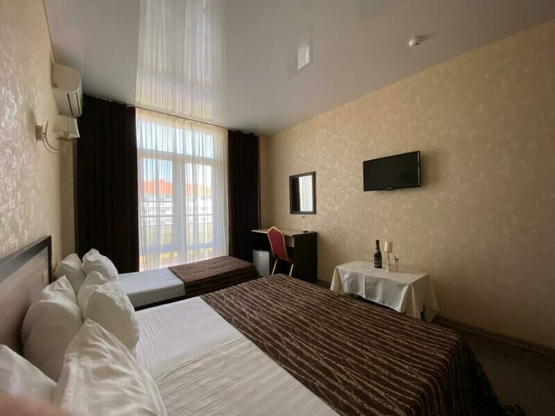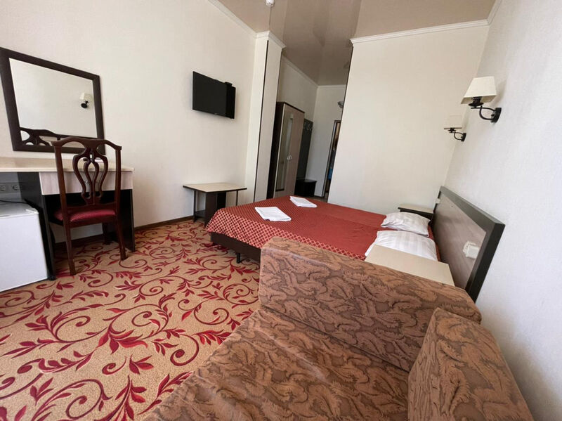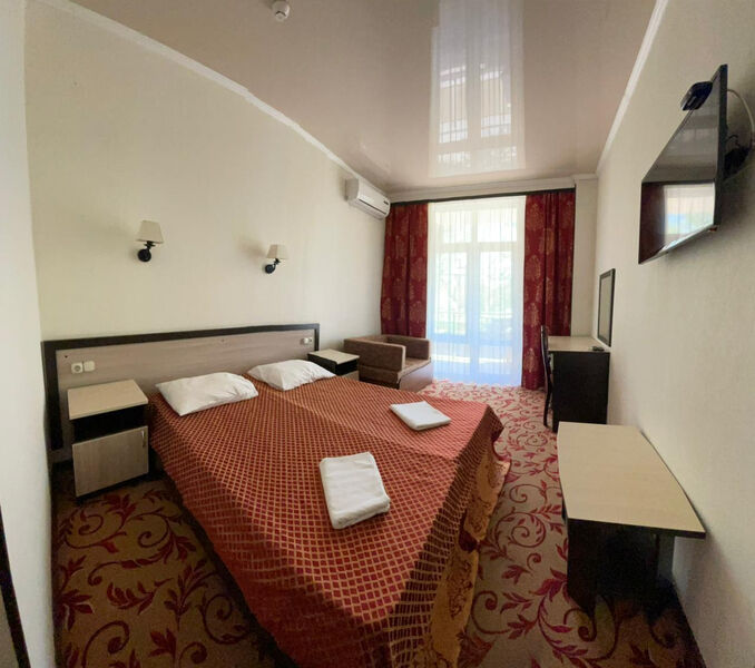 Гостевой дом представляет собой 4-х этажное здание, номерной фонд небольшой, но оснащен всем необходимым. К услугам гостей - открытый бассейн, беседка для отдыха. Для маленьких детей оборудована детская площадка. Для любителей активного отдыха организована баскетбольная площадка и настольный теннис. Питание в гостевом доме не предусмотрено, одна есть оборудованная кухня и бар.