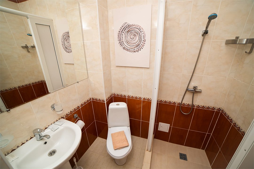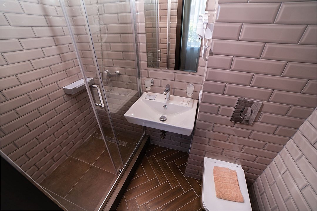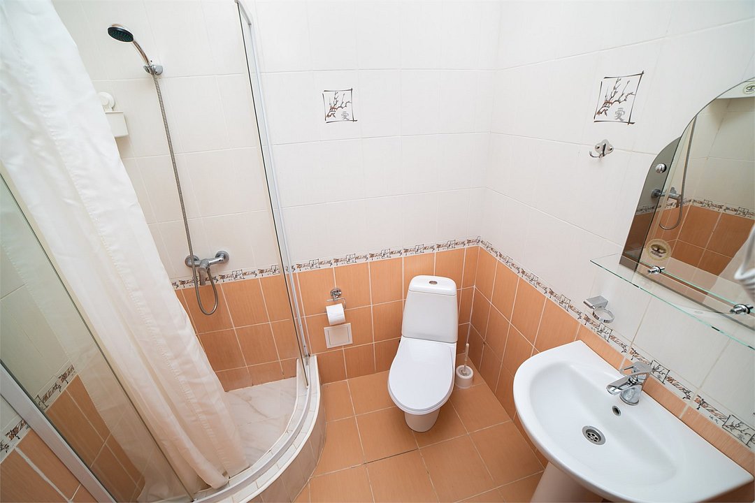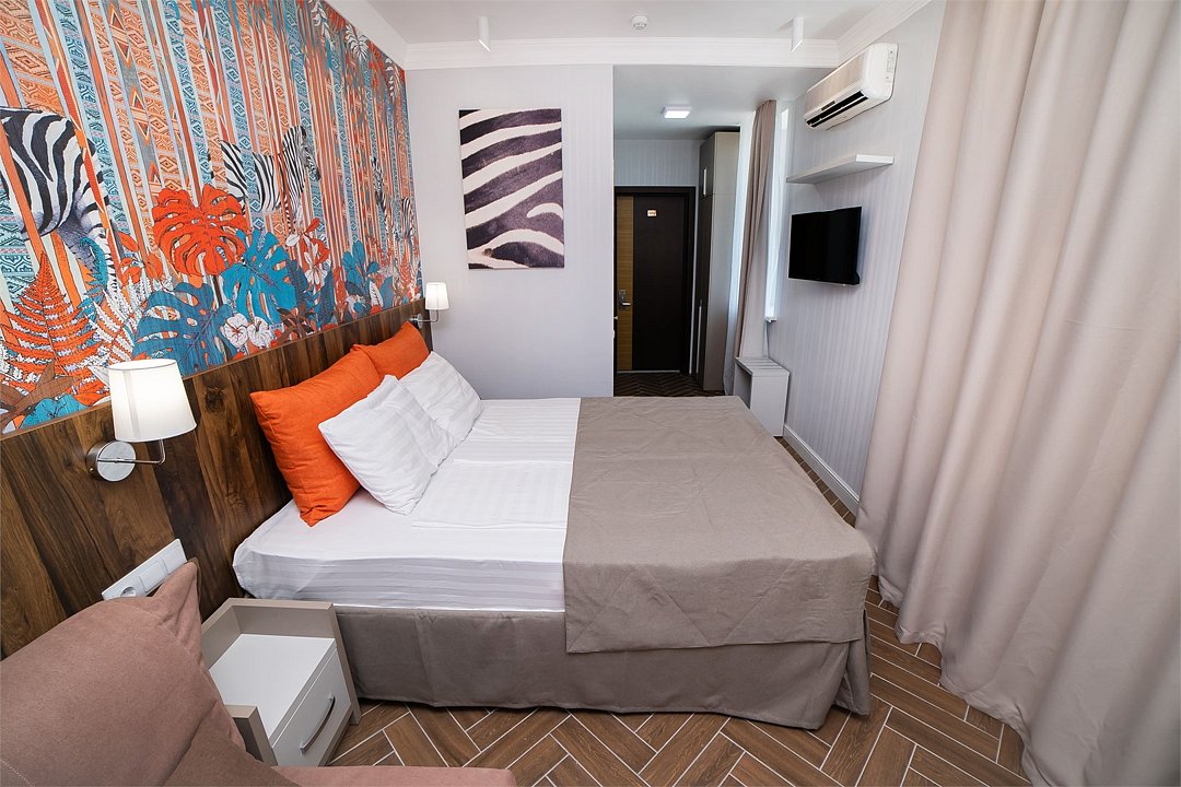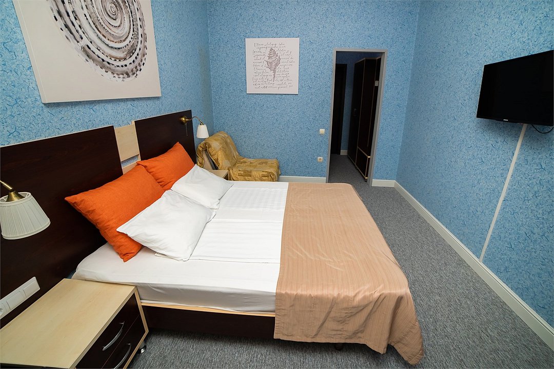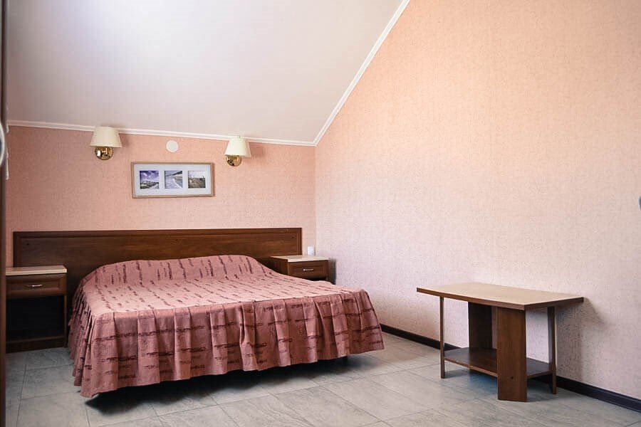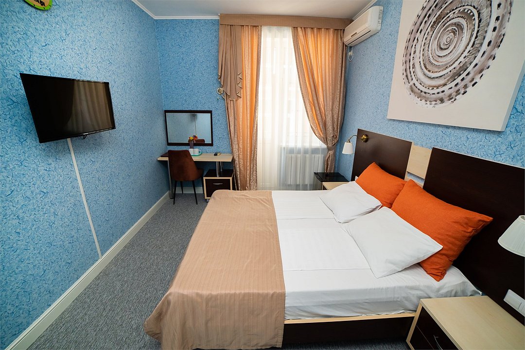 Комфортный двухместный номер площадью 15 кв. м. состоит из спальни и ванной комнаты. В номерах есть возможность проживания 1-2 человек. Есть номера как с 1 двуспальной, так и с 2-мя односпальными кроватями. Есть сплит-система, мини-холодильник и телевизор. Wi-Fi работает на всей территории отеля, в том числе и в номере. Гостям предоставляются банные полотенца и полотенца для лица. Уборка номера производится ежедневно, смена постельного белья раз в 6 дней, смена полотенец раз в 3 дня. Приятного отдыха!Услуги и удобства