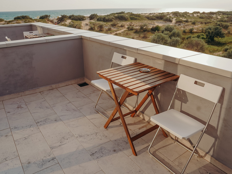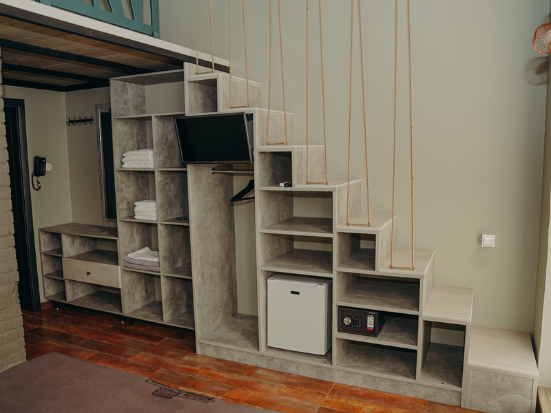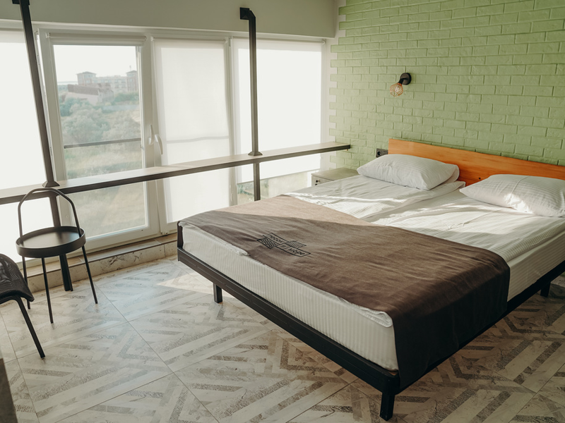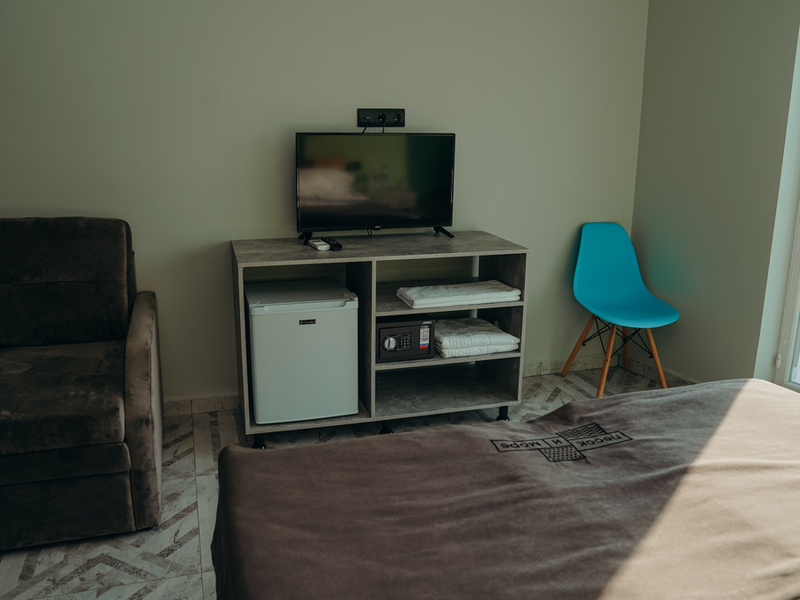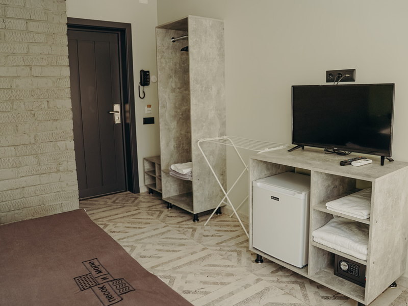 Современный корпус отеля расположен в 100 метрах от Черноморского побережья. Жилой фонд, рассчитанный на 120 человек, предлагает гостям номера Стандарт и Семейные. В номерах стильный интересный интерьере номера, везде есть санузел с душем и набором косметических принадлежностей, сплит-система, необходимая бытовая техника. Некоторые комнаты спроектированы в два уровня, из ряда номеров открываются живописные виды на море.