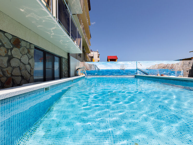 Тип бассейна: открытый бассейнВода в бассейне: подогреваемый бассейнРядом с бассейном: шезлонгиТемпература в бассейне: 32 °CРазмеры: 6 x 10 мПлощадь: 60 м²Глубина (диапазон): от 70 смТеплый бассейн с детским отделением глубиной 70 см.