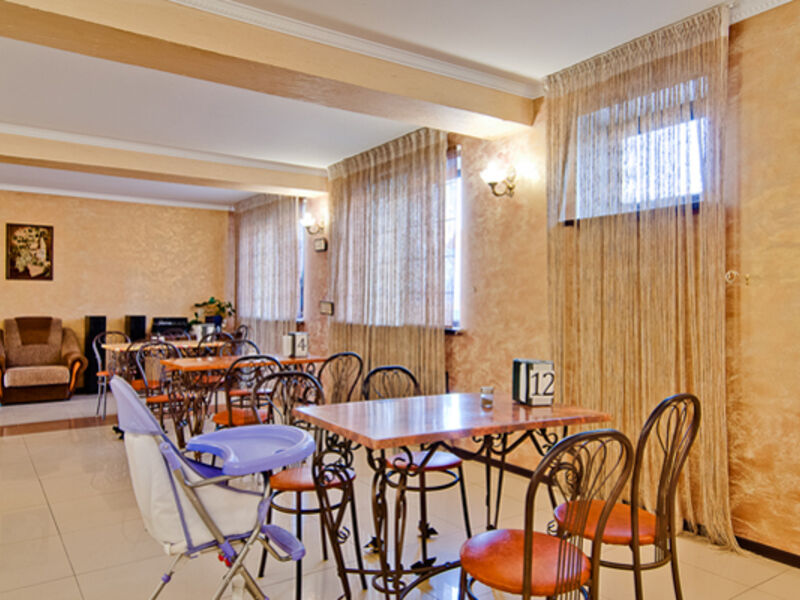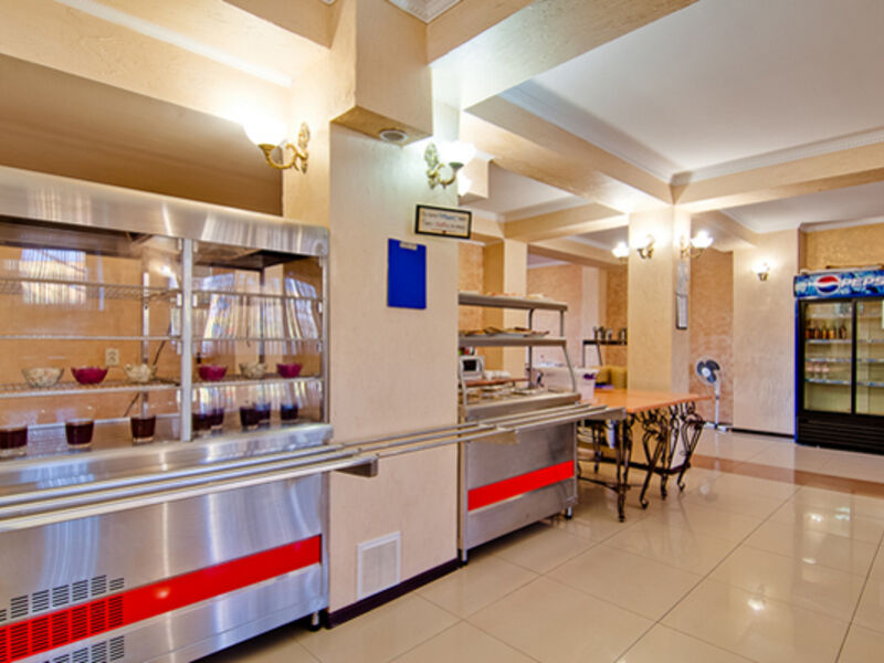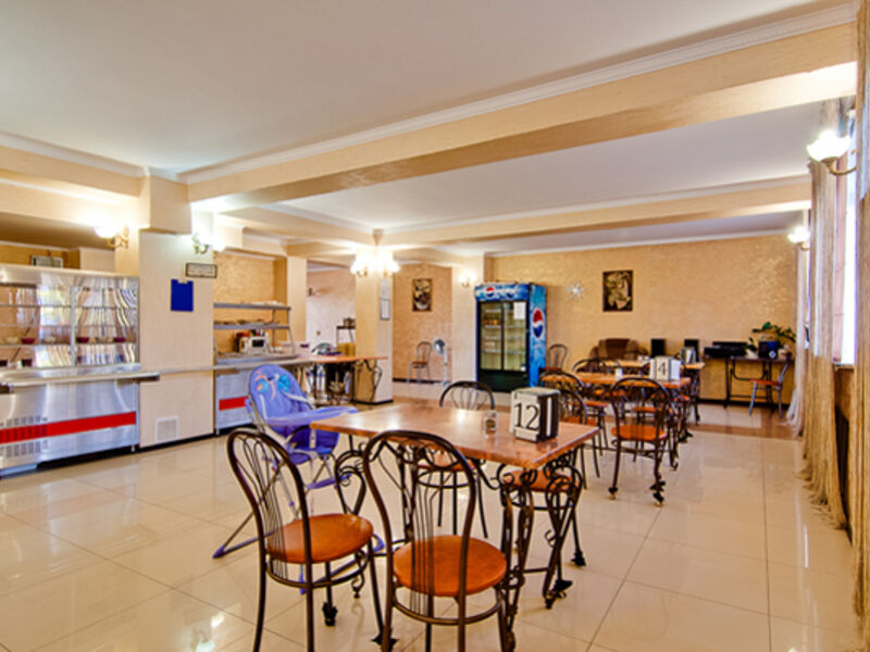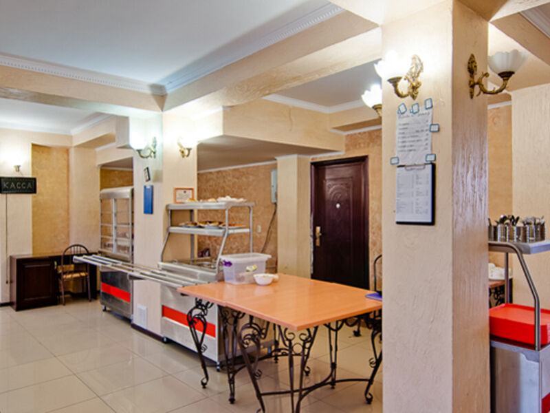 Питание гостей отеля осуществляется два раза в день. Для этого в отеле работает основная столовая, специализирующаяся на русской и кавказской кухне, а также пиццерия. В общем зале есть высокие стульчики для кормления малышей, создано детское меню. Рядом с отелем расположены летнее кафе с просторной верандой, бар, гриль-бар и пивной бар.