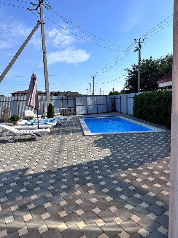 На территории находится бассейн с подогревом, беседка с зоной мангала, лежаки.