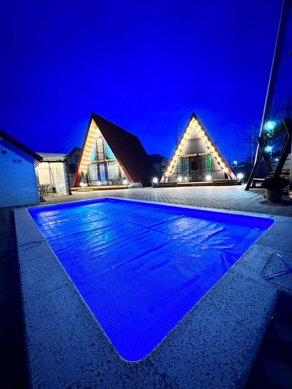 Вас ждут дома в стиле A-frame с панорамными окнами, баня из канадского кедра с мягким паром, беседка с мангальной зоной, а также чистый и тёплый бассейн под открытым небом.