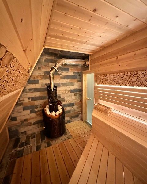 Инфраструктура: простыни, шапочкиМинимальное время аренды: 3 часаБаня из Канадского кедра с мягким паром. До 10 человек.