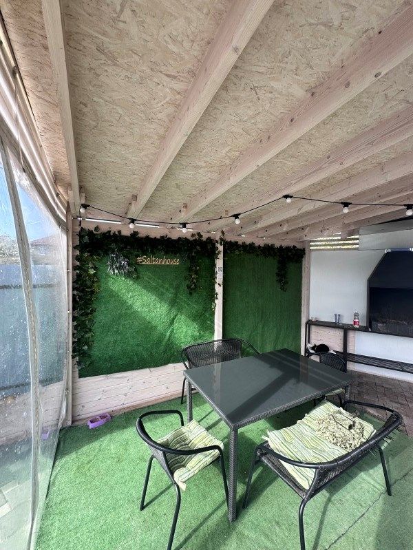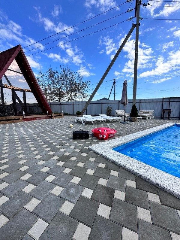 На улице расположен бассейн (с подогревом в холодное время, а также подсветкой) и беседка с мангалом.