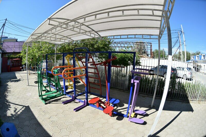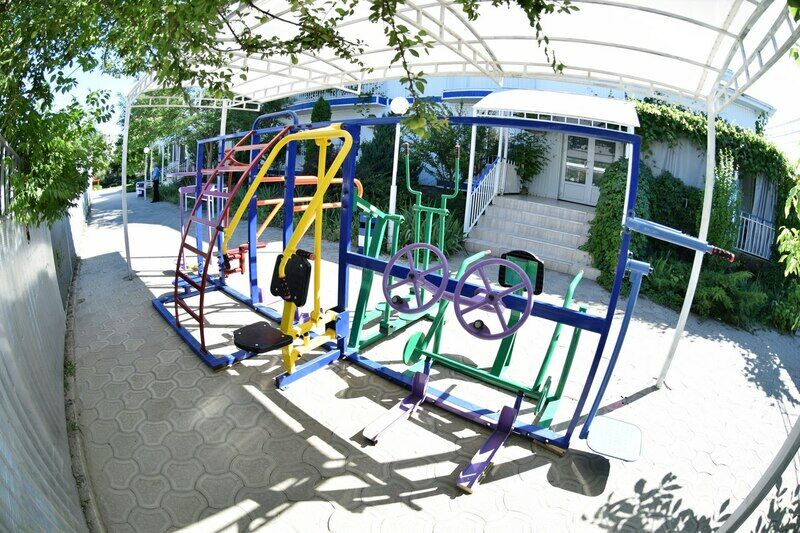 Инфраструктура базы включает в себя: собственную столовую, современный спортивный зал, крытый и открытый бассейны, детские площадки, парковку. Территория утопает в зелени, повсюду цветники, аккуратно подстриженные газоны, тенистые деревья и живописные места для уединения.