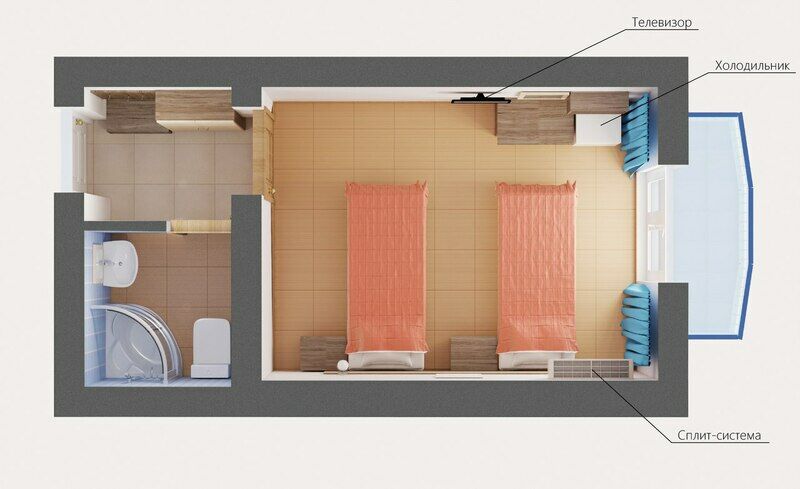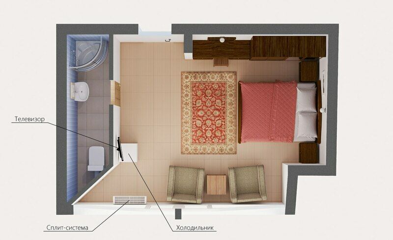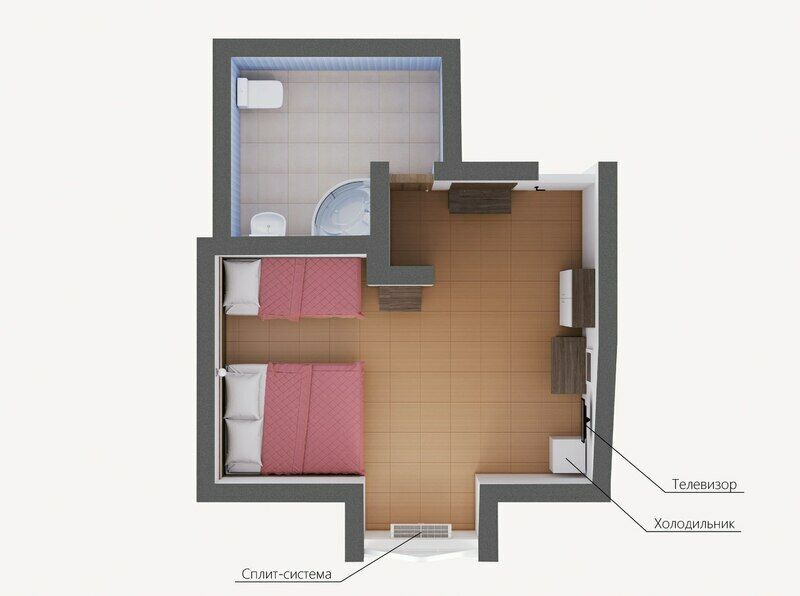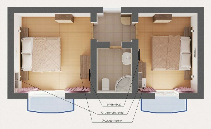 Однокомнатный номер. 3 этаж. В наличии 2 номера. Площадь 15 кв.м. Без балкона.