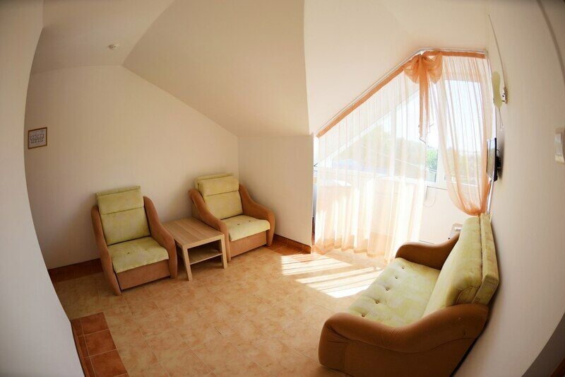Двухкомнатный номер с видом на море. 3 этаж. В наличии 1 номер. Площадь 38 кв.м. Возможна установка дополнительной кровати для ребенка (евро-раскладушка 70*70). Без балкона.
