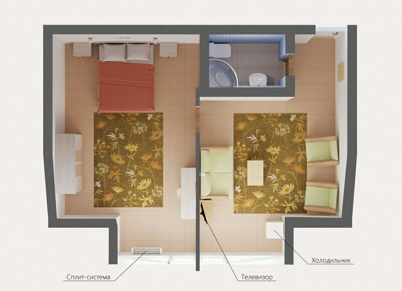 Удобства: сплит-система, телевизор, холодильник, санузел с душем.