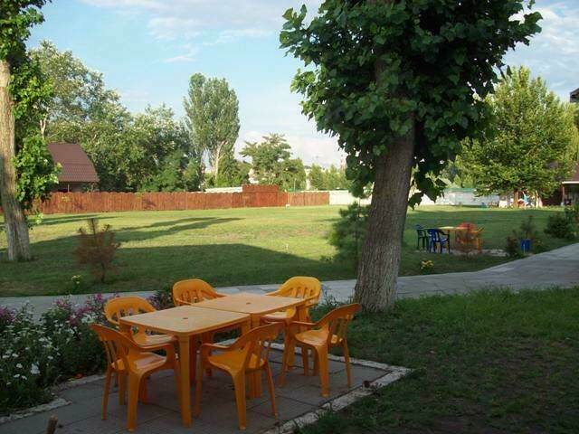 На территории базы имеется чистый бассейн с зонтами и лежаками, детская площадка, парковка, кухня общего пользования для самостоятельного приготовления пищи. Также еду можно заказать со скидкой в столовой «Тюльпана».