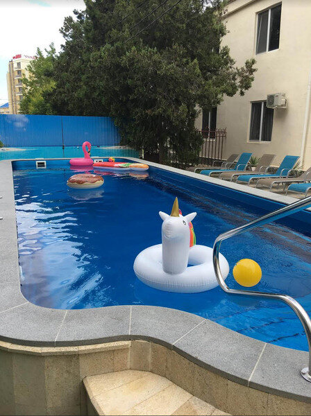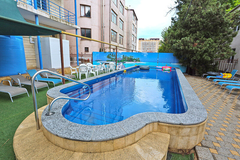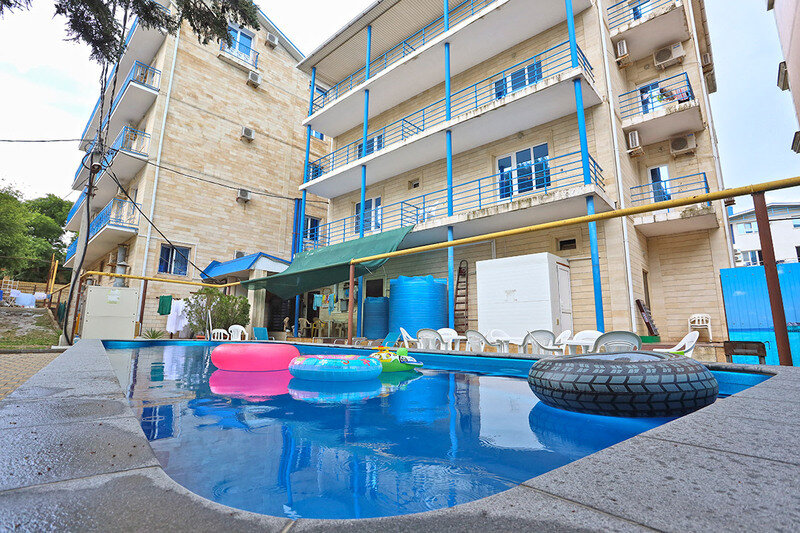 Красивое пятиэтажное здание с колоннами и балюстрадами расположено в 500 метрах от морского побережья. В распоряжении гостей 2-х и 3-х местные номера с удобствами. В каждом номере есть санузел с душем, кондиционер, плазменный телевизор, электрочайник.