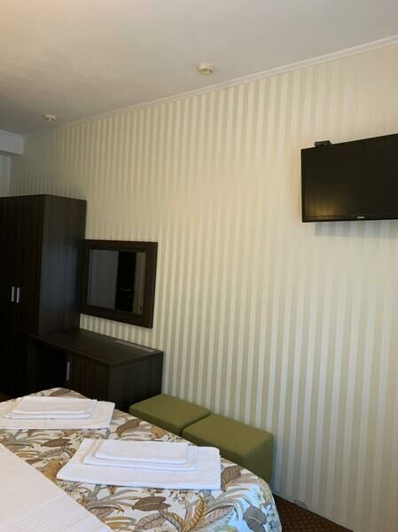 Путешествие с паройДаже избалованным заграницей понравится этот отель)Отдыхали с мужем в июле 2023 г, нам ОЧЕНЬ понравилась эта гостиница! Честно сказать, мы не ожидали найти гостиницу в России, которая тянет на сервис в Турции. Гостиница чистая, приятная, спокойная. В номерах уборка на 5+ каждый день, девушки трудятся на совесть, часто меняют белье и полотенца (их 3 штуки на человека + для ног). + в номерах фен, телевизор, маленький холодильник, сейф, поднос с графином и стаканами, одноразовые тапочки и мыльца с шампунем. До пляжа по паралии идти минут 10. На пляже у отеля есть собственный навес с шезлонгами (правда жаль, что без матрасов), это огромный плюс, так как народа в 23 г было невероятное количество, а для тебя всегда было место. На пляж выдают полотенца. Есть бассейн, маленький, но он есть (в бассейн выдают отдельные полотенца)) Полотенца пляжные и для бассика меняют каждый день бесплатно). Включены завтраки в формате шведского стола (в кафе Витязь при входе). Еда нормальная; вариации блюд из яиц, блины, оладьи, каши, супы, овощи, разные закуски, сыр, колбаса. В общем каждый найдет что-то для себя. В кафе кондиционеры, ненавязчивая музыка, хоть можно поговорить. Настоятельно рекомендую за отдельную плату попробовать борщ, пиццу, сковородки в этом кафе, очень вкусно! Есть небольшая закрытая бесплатная парковка, учитывая движение на этой улице, это тоже большой плюс!). Не сказать про персонал - ничего не сказать) Персонал на ресепшен просто изумительный; молодые, приветливые, дружелюбные, искренние ребята - душа этого отеля. Всегда на позитиве, с тобой с удовольствием поболтают, все расскажут, помогут, вообщем просто умнички! Спасибо им огромное за внимание и тёплый прием)
