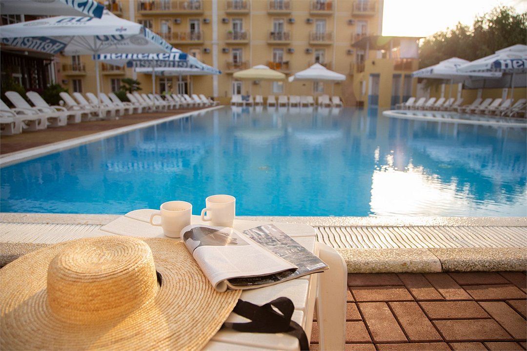 На территории комплекса можно воспользоваться открытым сезонным бассейном с оборудованной для принятия солнечных ванн зоной отдыха.