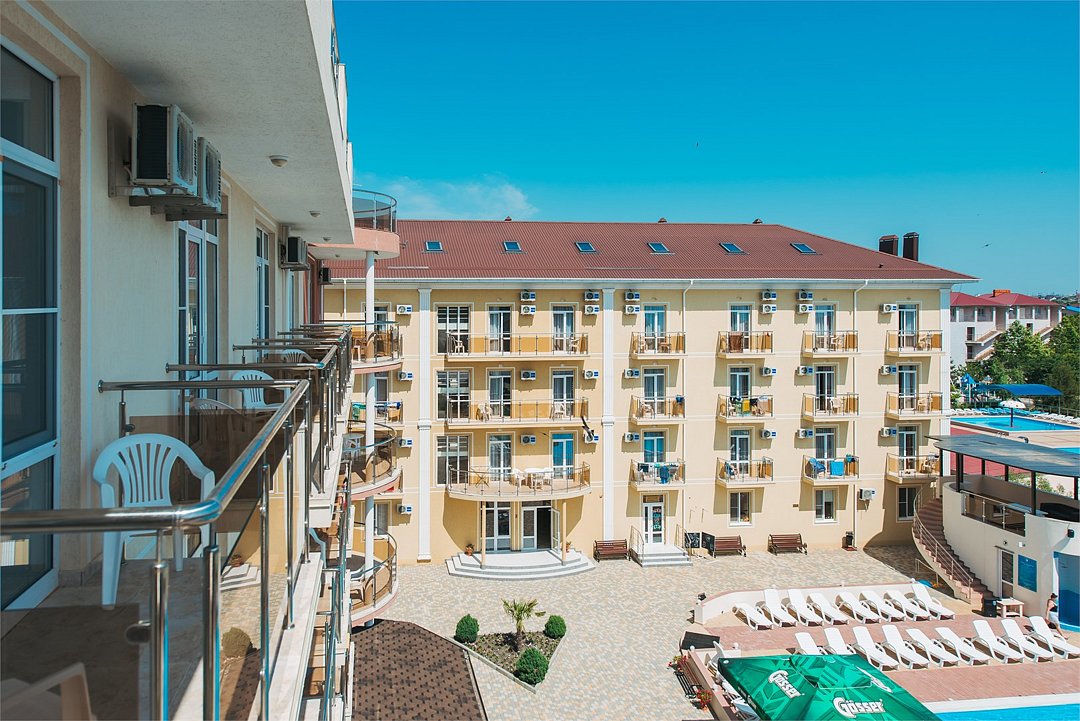 Трехзвездочный отель 2015 года постройки ждет отдыхающих на улице Славной. Это первая береговая линия, 150 метров от моря. Охотники за южным загаром оценят идеальный песчаный пляж, комфортабельные номера с видом на море и развитую поселковую инфраструктуру с парком развлечений, аквапарком, магазинами, рынком и автобусной остановкой в нескольких шагах от отеля. Благодаря удобствам размещения, хорошей организации питания и досуга, а также лояльной ценовой политике, «Venera Resort» подойдет как семьям с детьми, так и нуждающимся в спокойном отдыхе отпускникам.