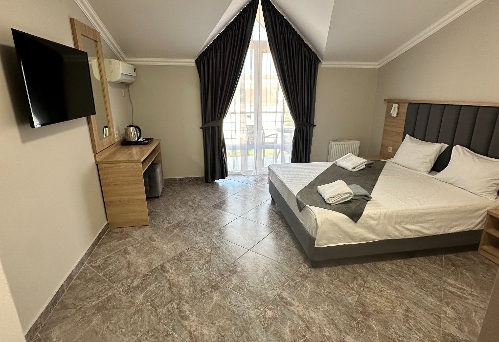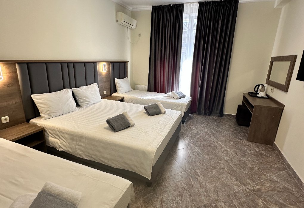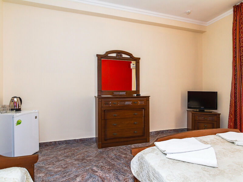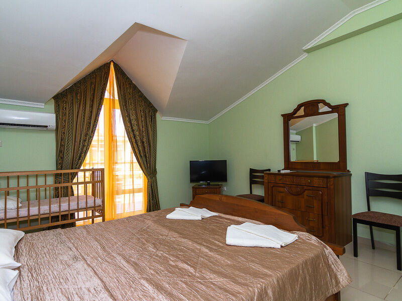 Семейный отдыхДостоинстваПолучилось так, что мы с семьёй приехали на час раньше заселения, однако нам пошли на встречу и разрешили заселиться в свободный номер! Это было очень приятно, потому что мы очень устали с дороги. Блюд много разнообразных, повар вообще душка! Море в пяти минутах. Есть рядом рынок, парк развлечений.