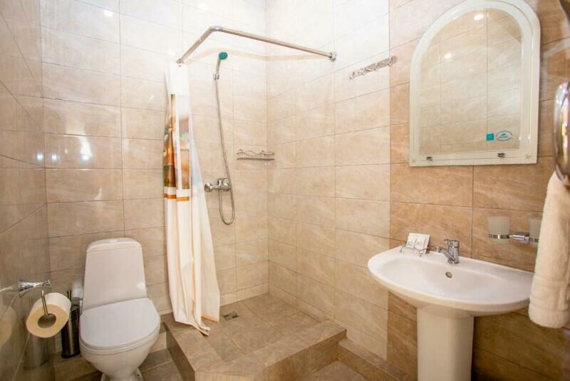 В каждом номере установлен кондиционер, холодильник и телевизор с плоским экраном. В числе других удобств — собственная ванная комната.