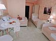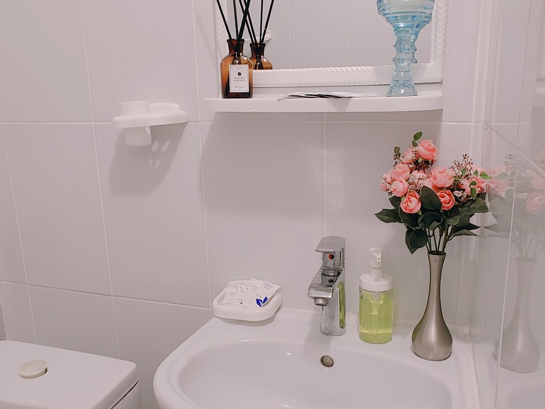 Номер оборудован: двуспальная кровать, две односпальные кровати и диван, телевизор, прикроватная тумбочка, шкаф, туалетный столик, телевизор, мини-холодильник, wi-fi. Ванная комната с раковиной и душем. Комфортную температуру обеспечивает сплит система кондиционирования. Французский балкончик.В номере