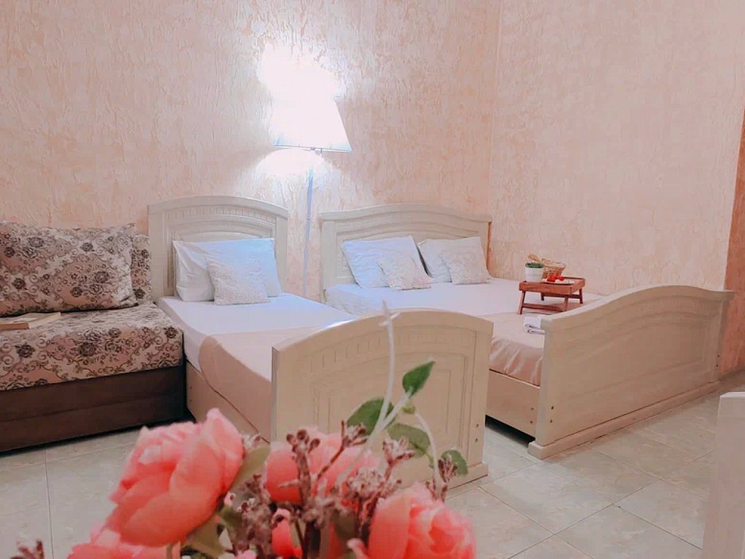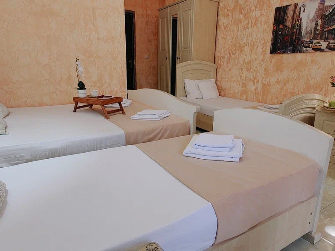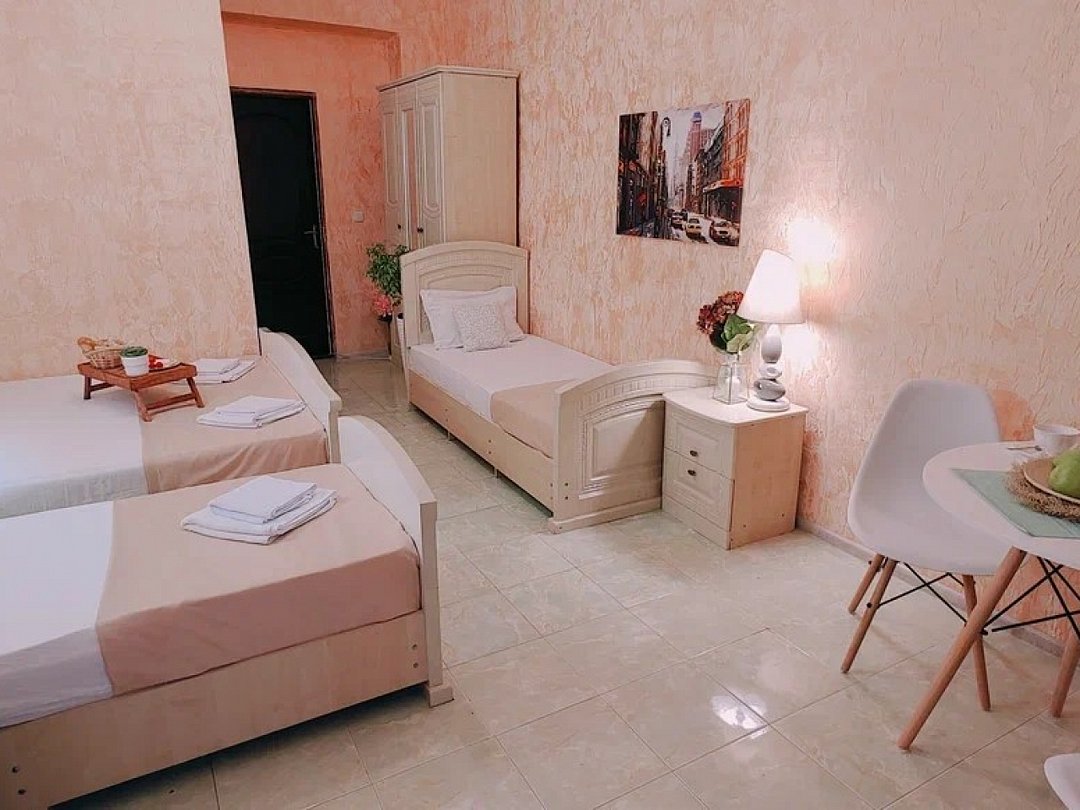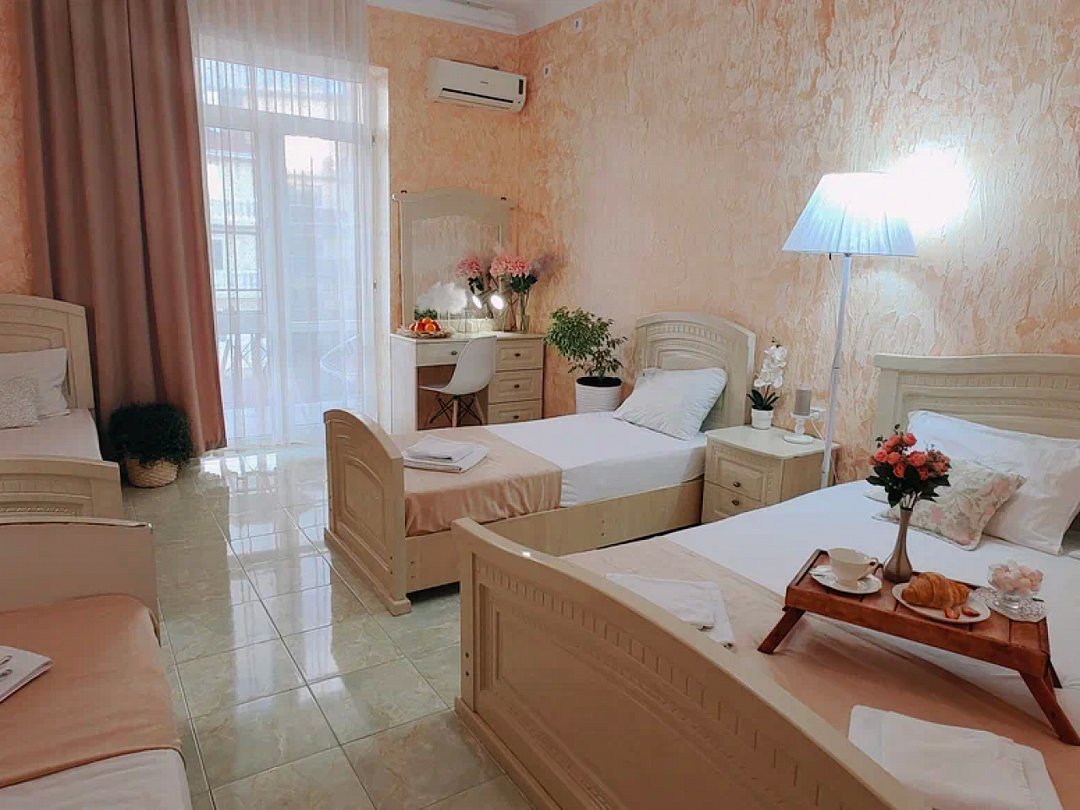 Светлый, уютный однокомнатный номер с балконом и собственной ванной комнатой. Номер оборудован: кровать размера queen-size, две односпальные кровати, мини-холодильник, телевизор, wi-fi, шкаф и туалетный столик. Комфортную температуру обеспечивает сплит система кондиционирования.В номере