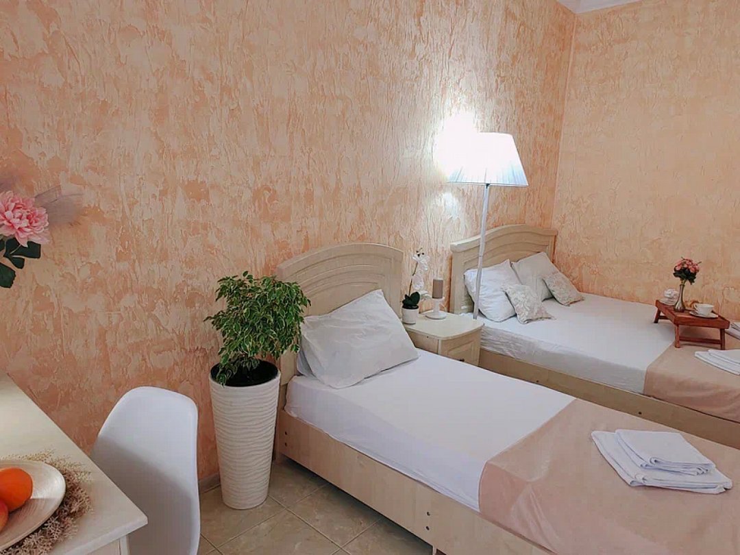 Светлый, уютный однокомнатный номер с балконом и собственной ванной комнатой. Номер оборудован: кровать размера queen-size, односпальная кровать, мини-холодильник, телевизор, wi-fi, шкаф и туалетный столик. Балкончик. Комфортную температуру обеспечивает сплит система кондиционирования.В номере