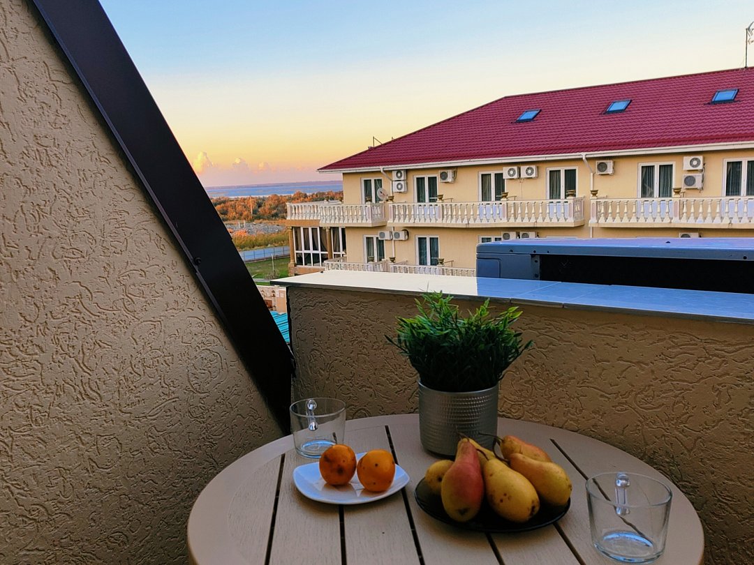 Светлый, уютный однокомнатный номер с балконом и собственной ванной комнатой. Номер оборудован: кровать размера queen-size, одна односпальная кровать и диван, мини-холодильник, телевизор, wi-fi, шкаф и туалетный столик. Балкончик. Комфортную температуру обеспечивает сплит система кондиционирования.В номере