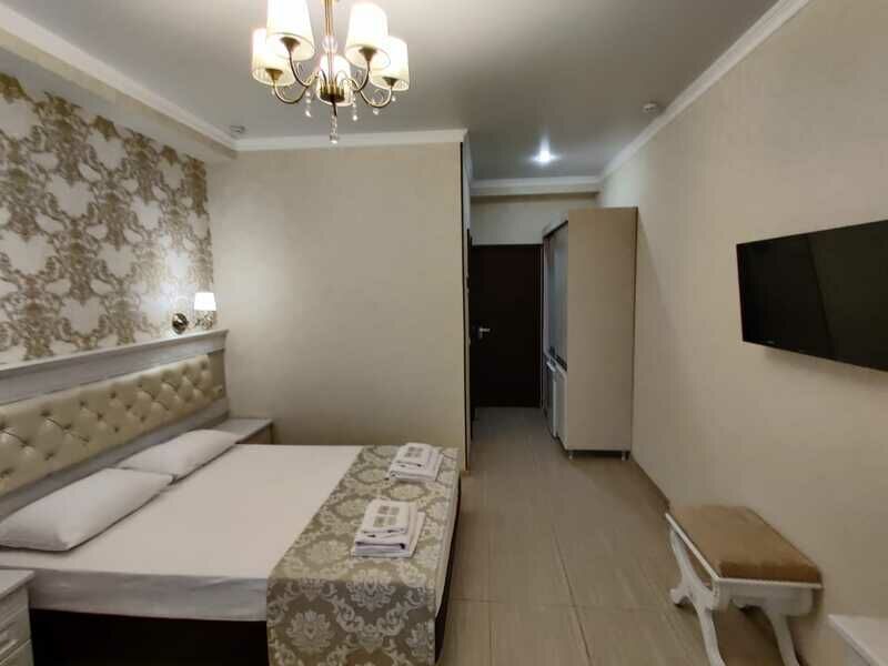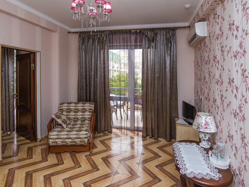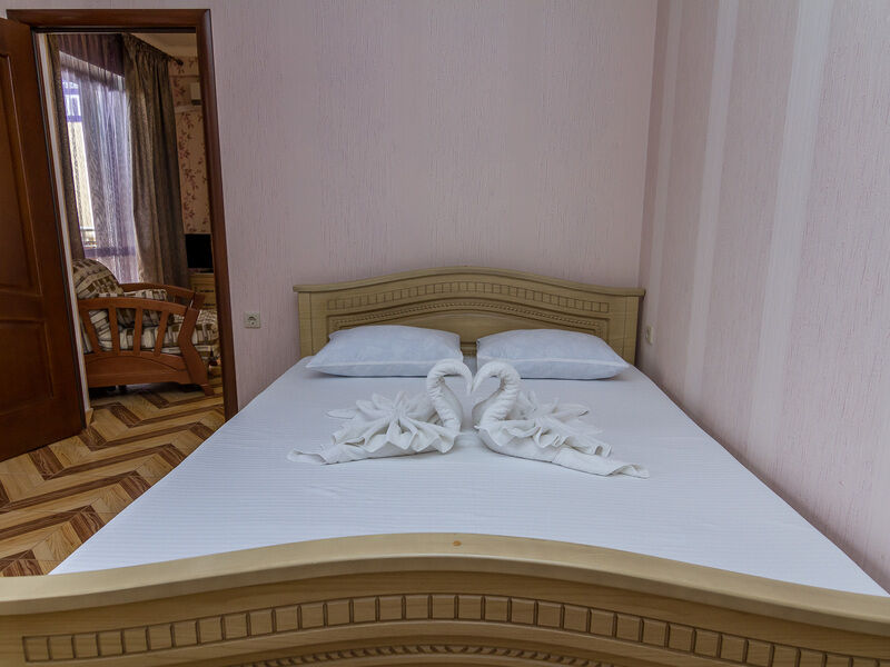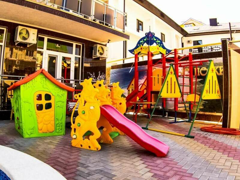 Находится отель в очень тихом месте. Это центр известного курортного поселкка Витязево. До песчаного пляжа и удивительных барханов очень близко. Оформление отеля элегантное. Отдыающие могут разместиться в комфортабельных номерах. У отеля есть своя территория, столовая, детская комната, площадка для детских игр, бассейн открытого типа с подогревом, теннис, бюро экскурсий, аниматоры для детей и взрослых.