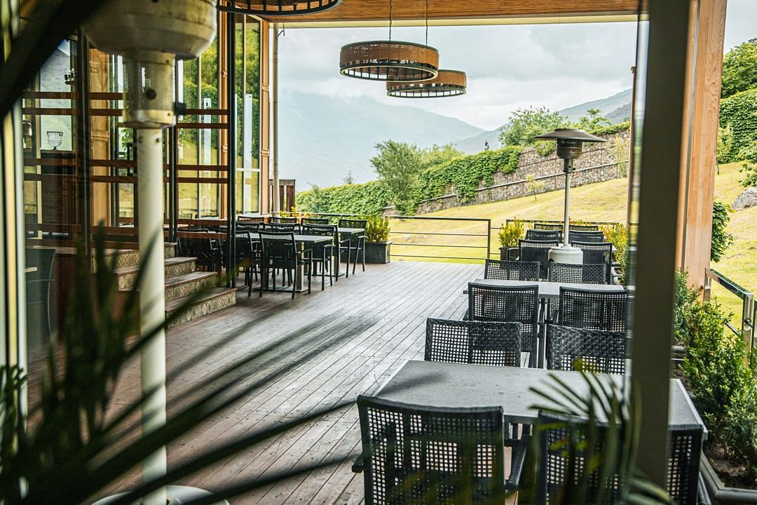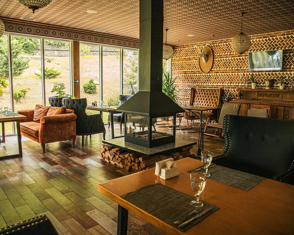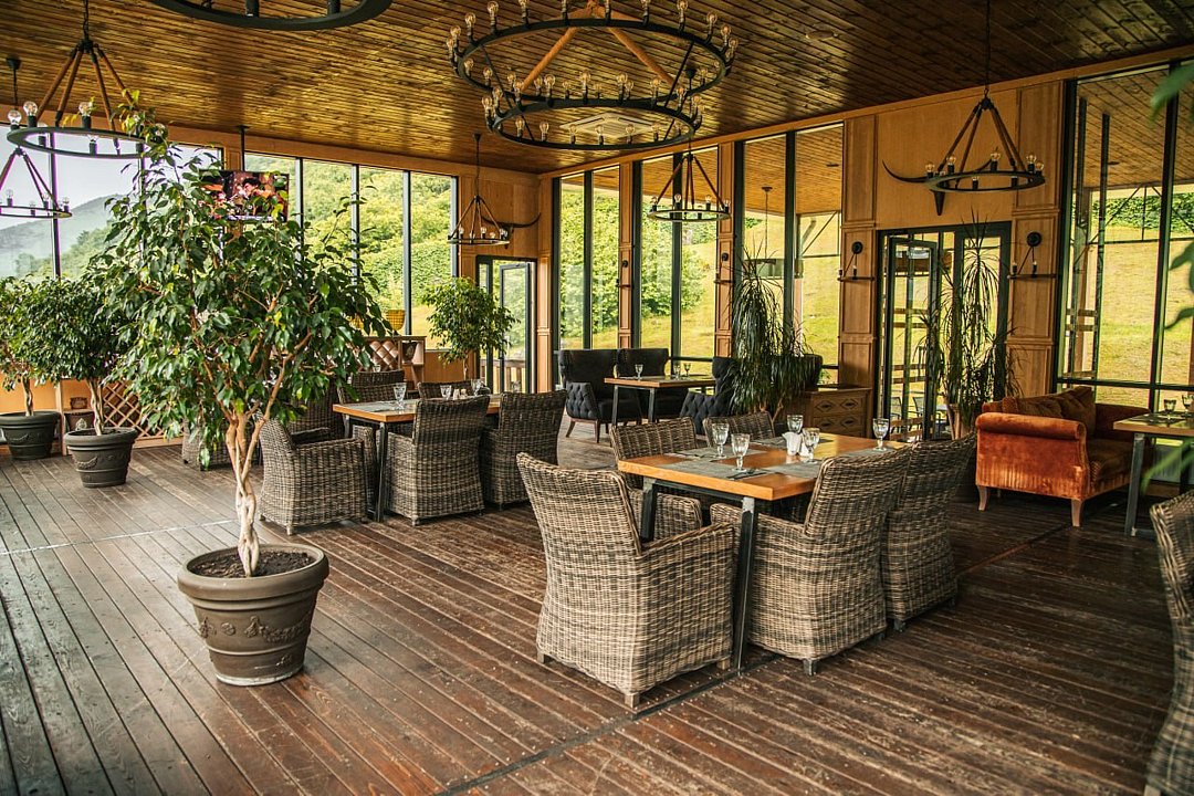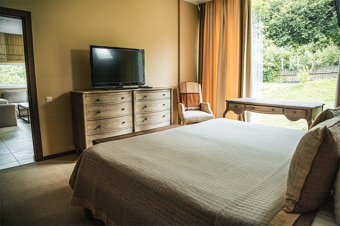 спутниковое телевидение, Wi-Fi, кондиционер, светильник, фен, ванна или душевая кабина, халаты, банные полотенца, тапочки, терраса, двуспальная кровать, кресла, гардеробная, мини-бар, обслуживание номеров, сейф, ковровое покрытие, душ, туалет, внутренний телефон, вид на горы, вид на лес, рабочий столВ номере