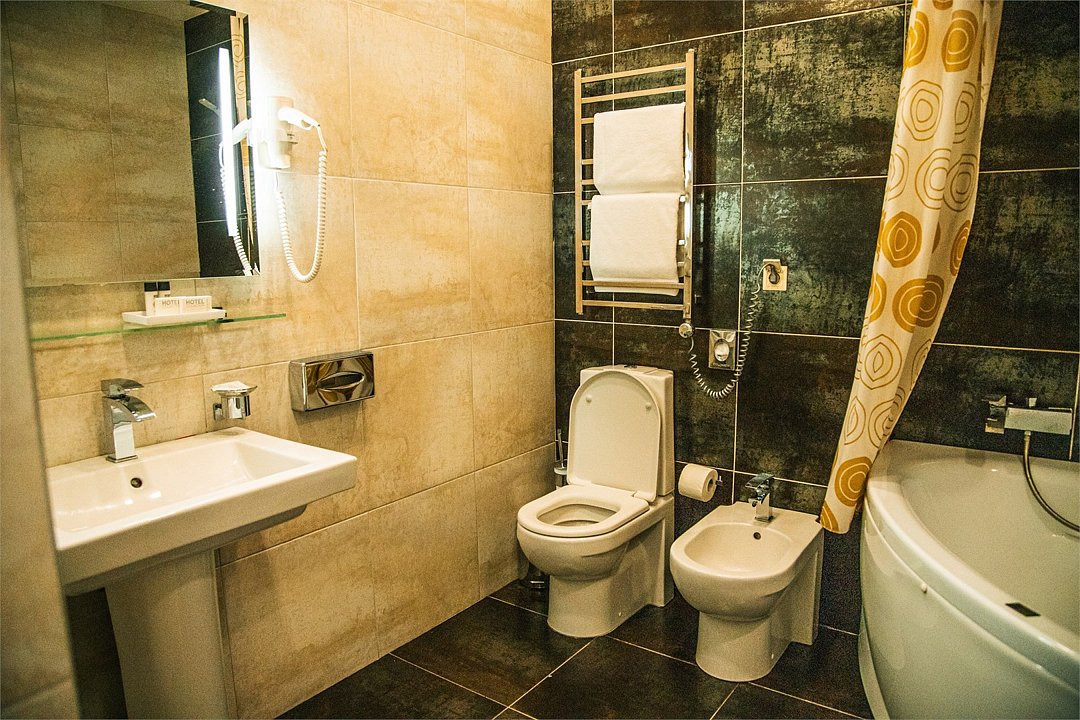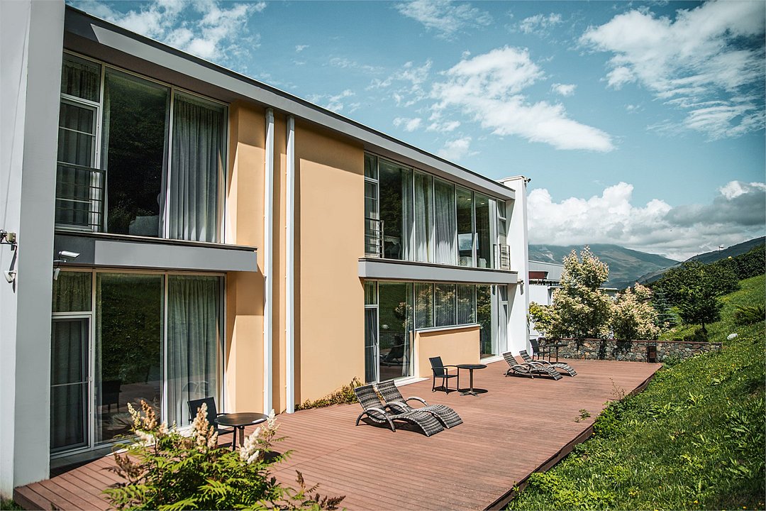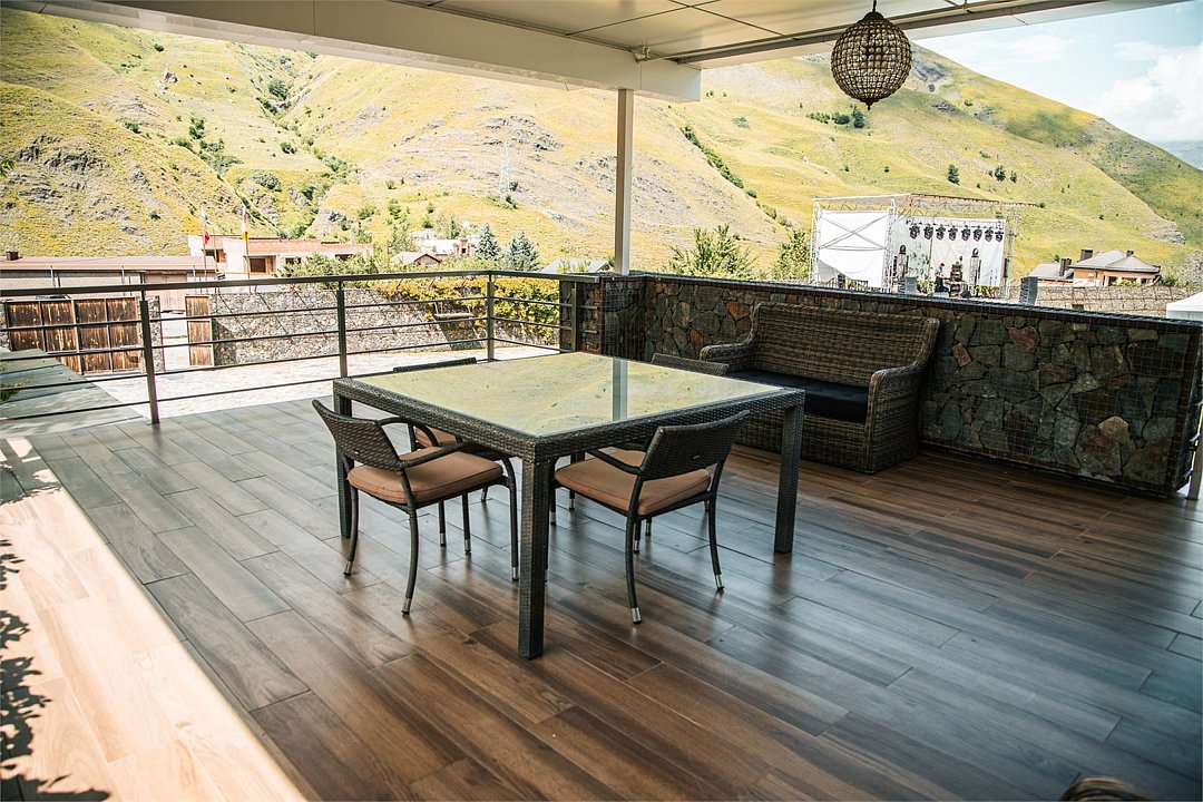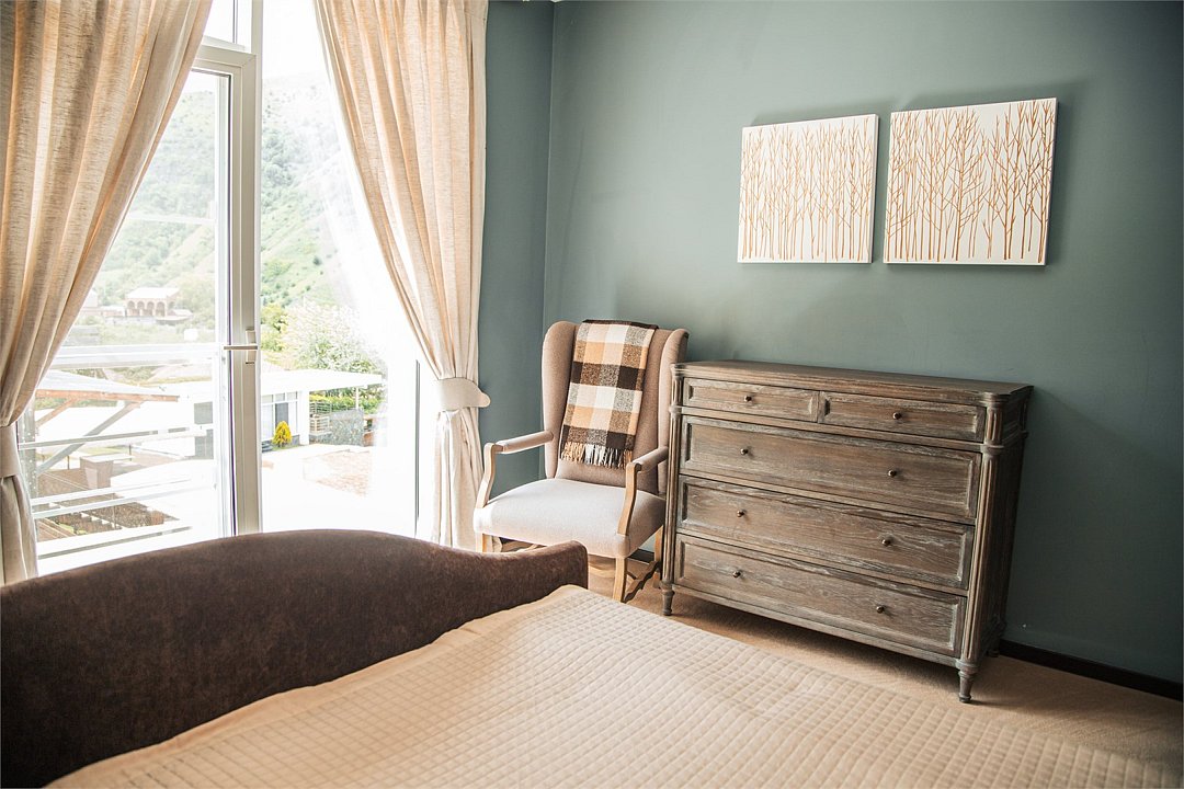 Стильный номер с панорамным видом на горные вершины и выходом на террасу. Гости отеля высоко оценивают премиальное качество мебели собственного производства "Mercada Home". Удобная двуспальная кровать является особой гордостью отеля. Приятным бонусом послужит наличие walk-in гардеробной, а также телевизора с кабельным телевидением.Услуги и удобства