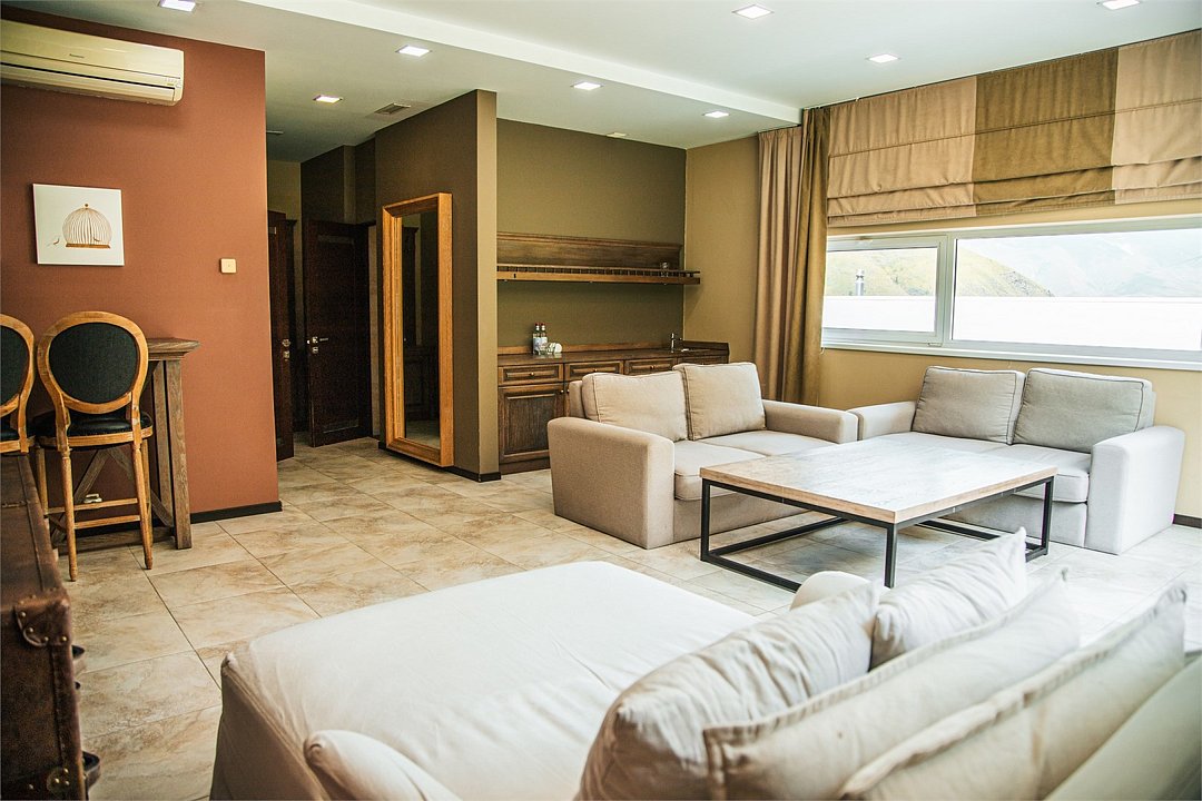 Комфортный и современный двухкомнатный номер с прекрасным видом на горные вершины и мебелью собственного производства "Mercada Home" премиального европейского качества. Номер разделен на две зоны: спальную, с удобной двуспальной кроватью, и гостиную, с мягкой мебелью для отдыха и кофейным столиком. Приятным бонусом послужит наличие столовой зоны, walk-in гардеробной, а также двух телевизоров с кабельным телевидением.Услуги и удобства