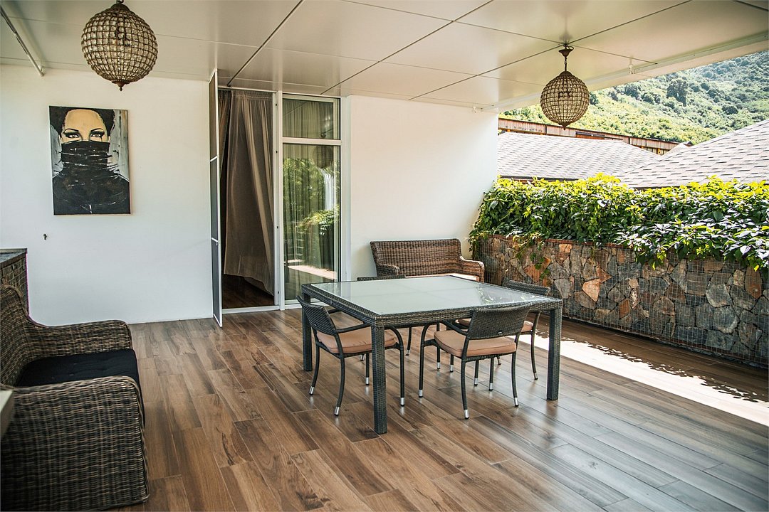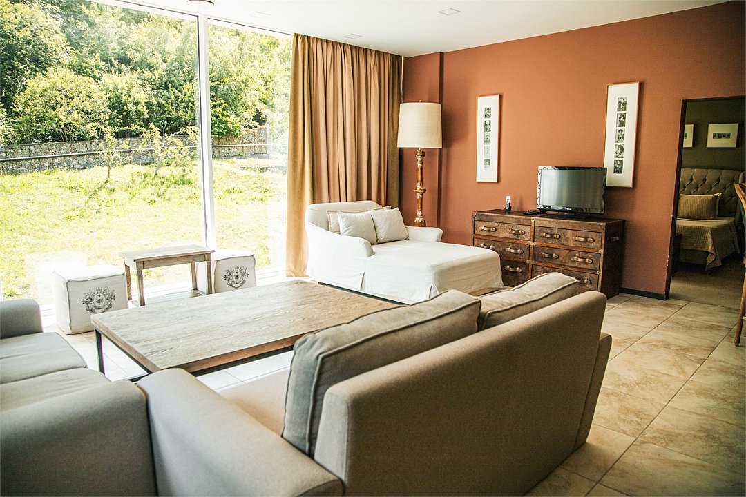 два телевизора, Wi-Fi, две комнаты, кухня, мини-бар, чайный набор, сейф, минеральная вода, обеденная зона, гостиная зона, кухонная посуда, стаканы, мини-кухня, вид на горы, номер для некурящих, общественный бассейн, экологичный подход, уборка номера, услуги прачечной (платно), бутилированная водаВ номере