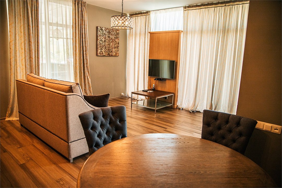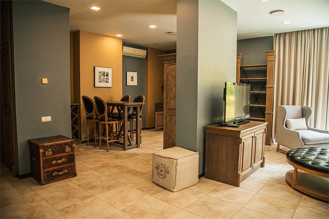 два телевизора, Wi-Fi, кондиционер, кровать «King size», сейф, косметическое зеркало, обеденная зона, гостиная зона, кофейный столик, мини-холодильник, мини-кухня, общественный бассейн, бутилированная водаВ номере