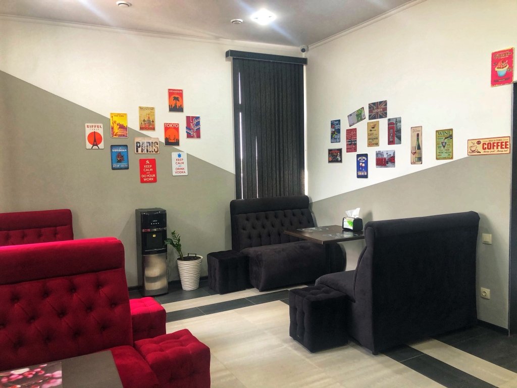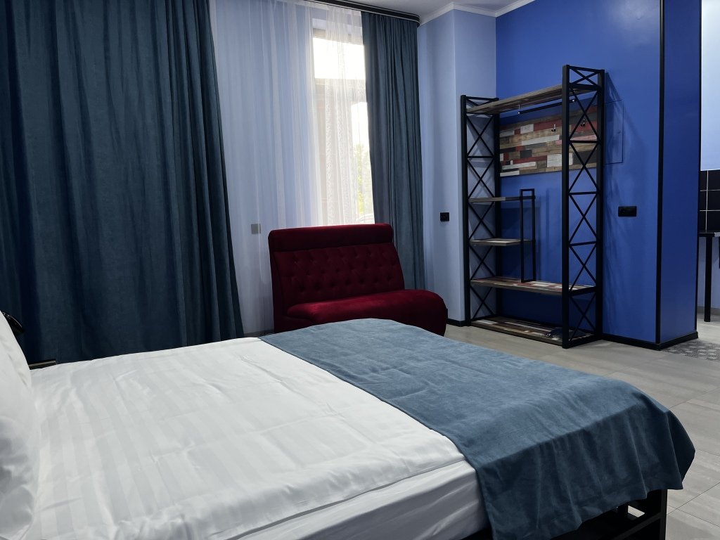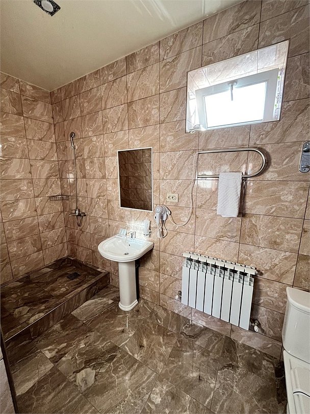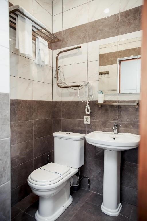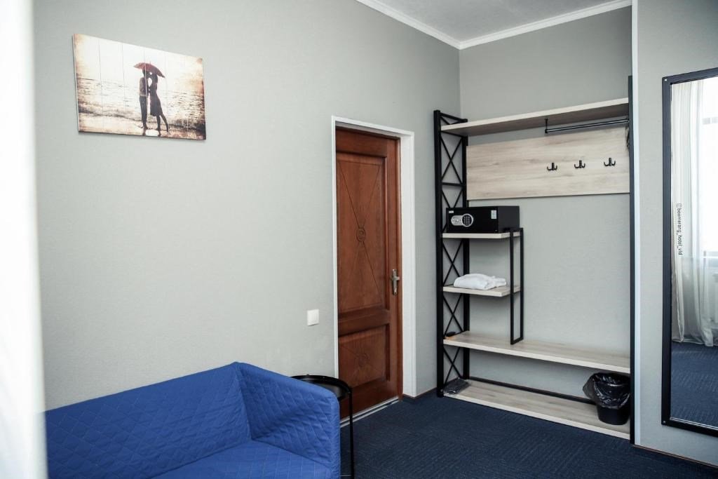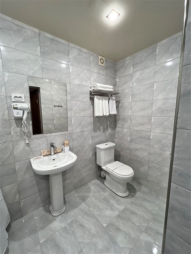Путешествие с семьейХорошее соотношение цена-качествоОтель расположен в районе частного сектора, но недалеко от центра, тихо, спокойно, огороженная территория. В номерах чисто, есть чайник, холодильник, бутылка воды 1,5 л, чай, вот кофе нет. Разовые тапочки. В ванной комнате набор с зубными щетками и пастой, мыло, шампунь и гель для душа в разовых пакетиках. Не очень удобная душевая кабина, полуоткрыта и вода заливает пол в ванной во время мытья. Номера чистые, постель удобная. Девушки на рецепшне приятные, внимательные, быстро заселили, «устроили» наш чемодан после выселения. Можно заказать завтрак на месте. Так как мы останавливались на одну ночь по дороге в Грузию, и через неделю снова на одну ночь, то завтрак заказали во вторую остановку - столовая в отдельном корпусе, надо пройти по улице на территории гостиницы, вот тут мне не очень понравилось, прохладно в октябре в помещении, смурная, уставшая женщина вынесла, заказанные нами с вечера, блюда и ушла заниматься своим делами, от которых как нам показалось мы ее оторвали. На небольшом общем столе отдельно лежали хлеб, сыр, джем, что-то ещё, что входило в стоимость завтрака, но этого было так мало, что даже неудобно было забирать последние кусочки))) а пополнится это или нет, спрашивать не очень хотелось. Ну может просто день у человека не задался или самочувствие не очень было, мы же только один раз завтракали, но если в столовой всегда так встречают, это не очень приятно.