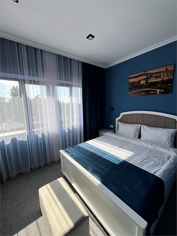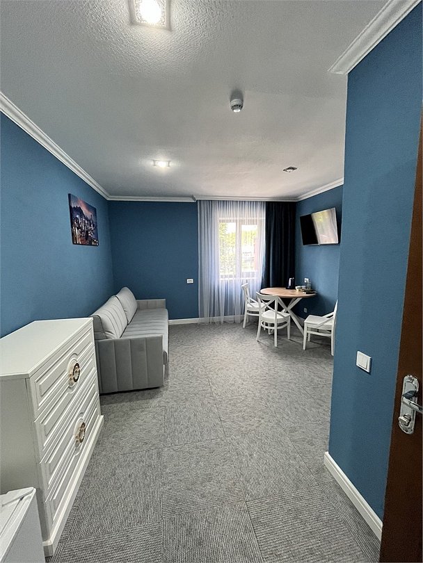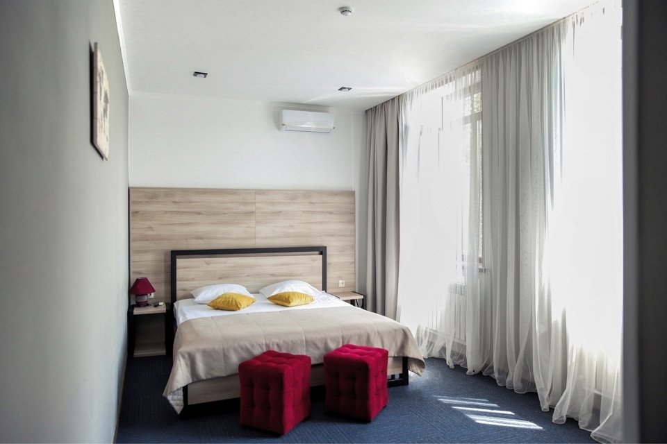 Второй корпус. Двухкомнатный номер люкс с двуспальной кроватью и диваном.Услуги и удобства