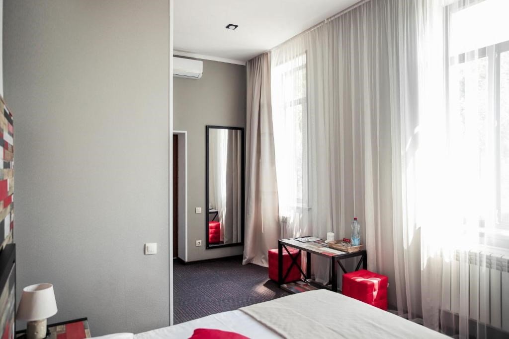 телевизор, кабельное телевидение, Wi-Fi, кондиционер, фен, ванная комната, банные полотенца, две односпальные кровати, вешалки, журнальный столик, зеркало, пуфики, унитаз, раковина, питьевая вода, отопление, душ, вид во двор, высокие потолки, кухонная посуда, туалетные средства, сплит-система, мини-холодильник, пуфик, чайная станция, уборка номера, бутилированная вода, мыло, затемняющая штора, зеркало в полный рост, открытый шкаф, без питомцевВ номере