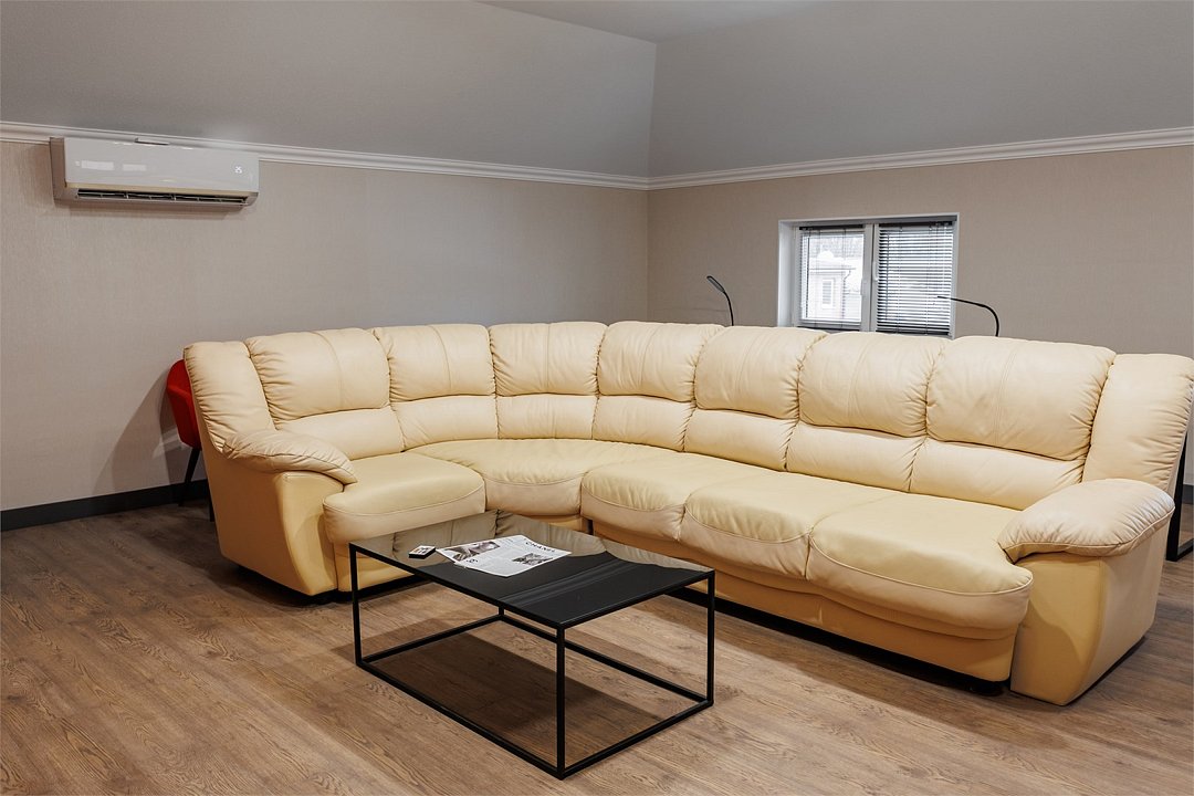 Wi-Fi, кондиционер, светильник, кулер, микроволновая печь, душевая кабина, санузел, теплый пол, банные принадлежности, банные полотенца, тапочки, косметические средства, диван, стулья, шкаф для одежды, журнальный столик, письменный стол, обеденный стол, вид во двор, стол, телевизор со Smart TV, частный двор, мыло, затемняющая штора, зеркало в полный рост, четыре полуторaспальные кровати, без питомцев, сенсорные панели для управление освещениемВ месте в номере