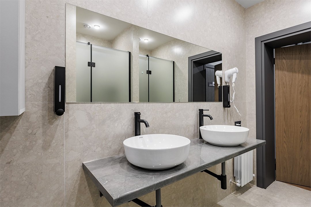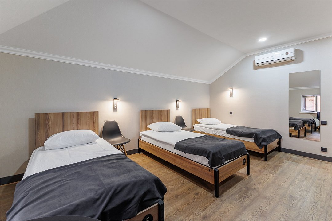 Wi-Fi, кондиционер, светильник, настольные лампы, кулер, фен, микроволновая печь, обогреватель, душевая кабина, санузел, дополнительная ванная комната, теплый пол, банные принадлежности, банные полотенца, тапочки, гигиенические средства, косметические средства, стулья, шкаф для одежды, журнальный столик, обеденный стол, обслуживание номеров, питьевая вода, обеденная зона, гостиная зона, отопление, вид во двор, стаканы, шесть односпальных кроватей, стол, туалетные средства, москитная сетка, телевизор со Smart TV, теплые полы, антибактериальное средство для рук, чайная станция, уборка номера, набор для приготовления чая и кофе, мыло, затемняющая штора, зеркало в полный рост, вода из артезианской скважины, коворкинг, без питомцев, сенсорные панели для управление освещениемВ месте в номере