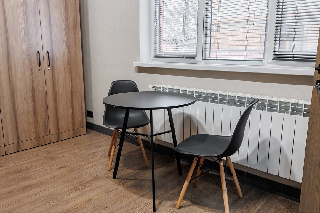 Wi-Fi, светильник, кулер, микроволновая печь, душевая кабина, санузел, дополнительная ванная комната, теплый пол, банные принадлежности, банные полотенца, тапочки, стулья, шкаф для одежды, обеденная зона, гостиная зона, отопление, вид во двор, стаканы, стол, туалетные средства, телевизор со Smart TV, теплые полы, антибактериальное средство для рук, уборка номера, набор для приготовления чая и кофе, мыло, затемняющая штора, зеркало в полный рост, коворкинг, четыре полуторaспальные кровати, без питомцев, сенсорные панели для управление освещениемВ месте в номере