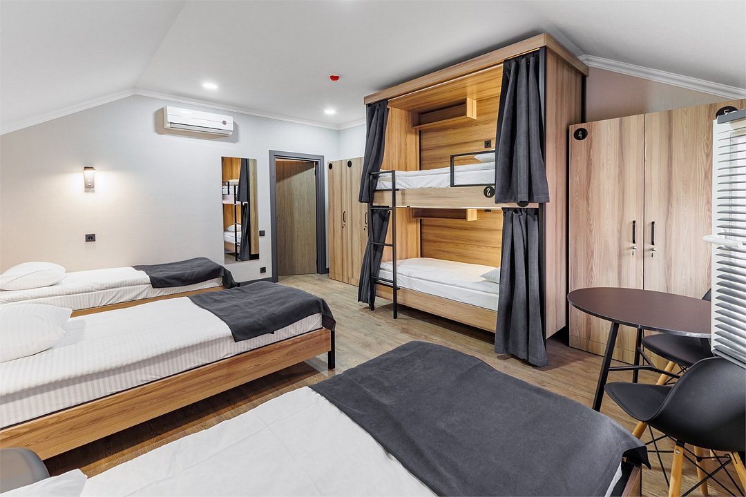 Просторное помещение оформлено в нежных пастельных тонах, что создает атмосферу спокойствия и умиротворения. В номере имеются удобные кровати с ортопедическими матрасами, что обеспечивает сладкий сон после долгих прогулок по живописным улочкам города. Гостям предоставляются личные шкафчики для хранения вещей, а также уютное пространство для общения и отдыха. На каждом этаже хостела расположены современные санитарные узлы и душевые, обеспечивающие максимальный комфорт.Услуги и удобства