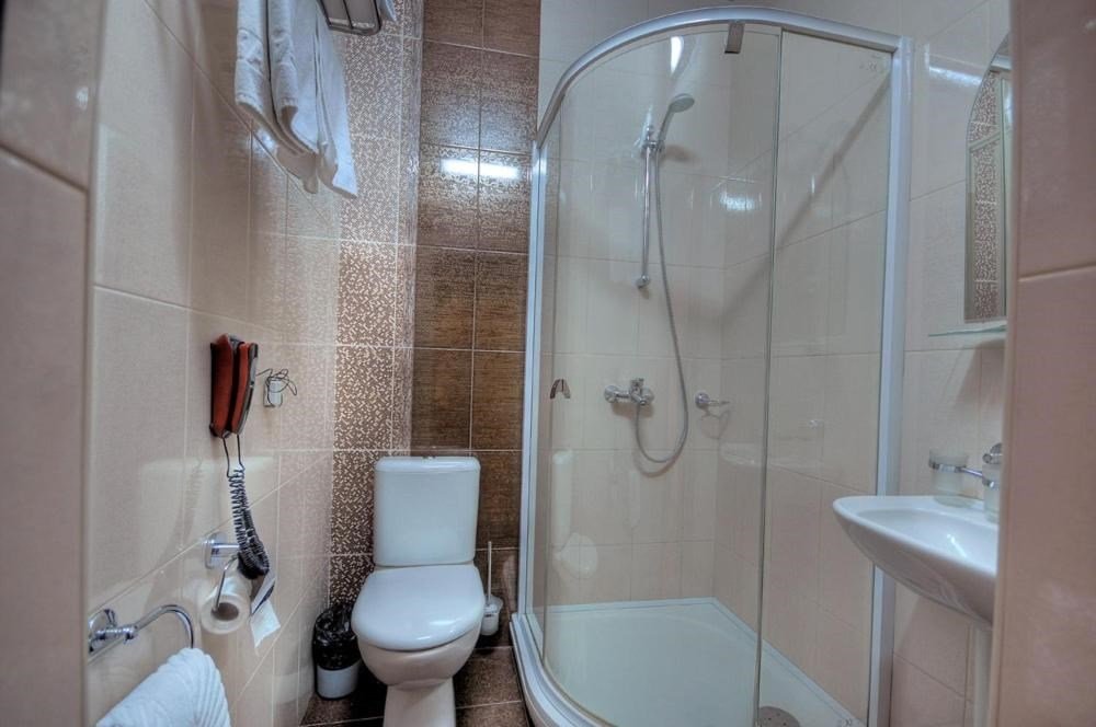 телевизор, Wi-Fi, кондиционер, душевая кабина, тапочки, гигиенические средства, односпальная кровать, зеркало, мебельный гарнитур, унитаз, вид на город, кулер на этаже, вид во двор, стул, мини-холодильникВ гостиничном номере