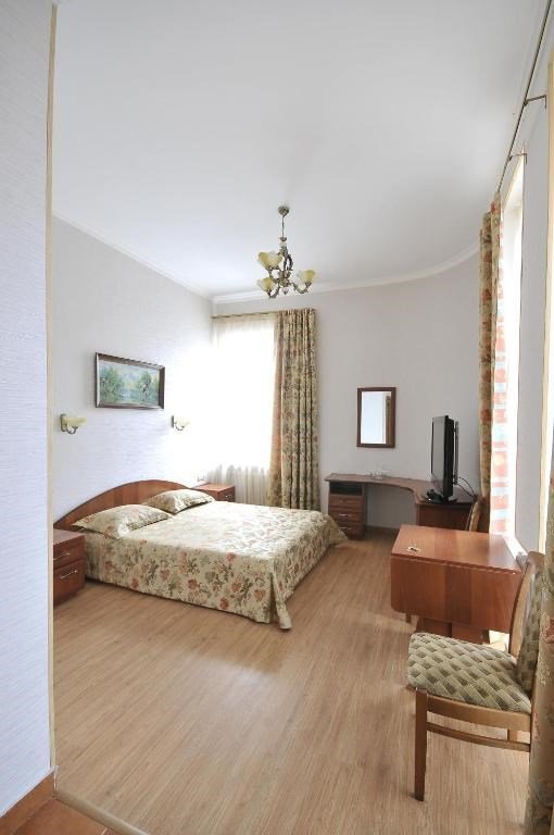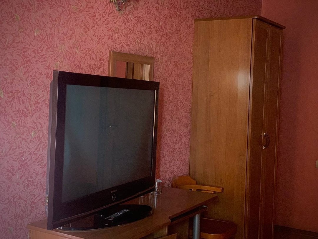 телевизор, Wi-Fi, кондиционер, душевая кабина, халаты, тапочки, гигиенические средства, двуспальная кровать, зеркало, мебельный гарнитур, унитаз, вид на город, кулер на этаже, вид во двор, стул, диван-кровать, мини-холодильникВ гостиничном номере